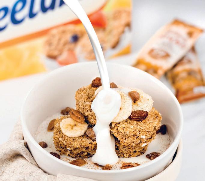 Mondelez’s Belvita brand ticks multiple boxes, o ering zero preparation, high bre content and ve wholegrains to boost satiety.