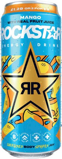 Rockstar is also keen to show o its value credentials. To o er better value to shoppers and to help retailers encourage basket spend, Rockstar Energy launched a price-marked pack (PMP) proposition across its range. “Rockstar’s 2 for £2 PMP aims to provide greater value for shoppers, particularly appealing to frequent energy drink buyers,” says Ben Parker, VP Sales O -Trade, Carlsberg Britvic.