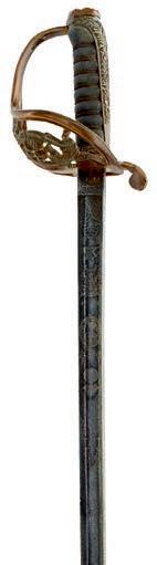 811. A LIGHT COMPANY OFFICER’S SWORD, 72.5cm sharply curved blade by OSBORNE decorated with scrolling foliage and stands of arms, regulation