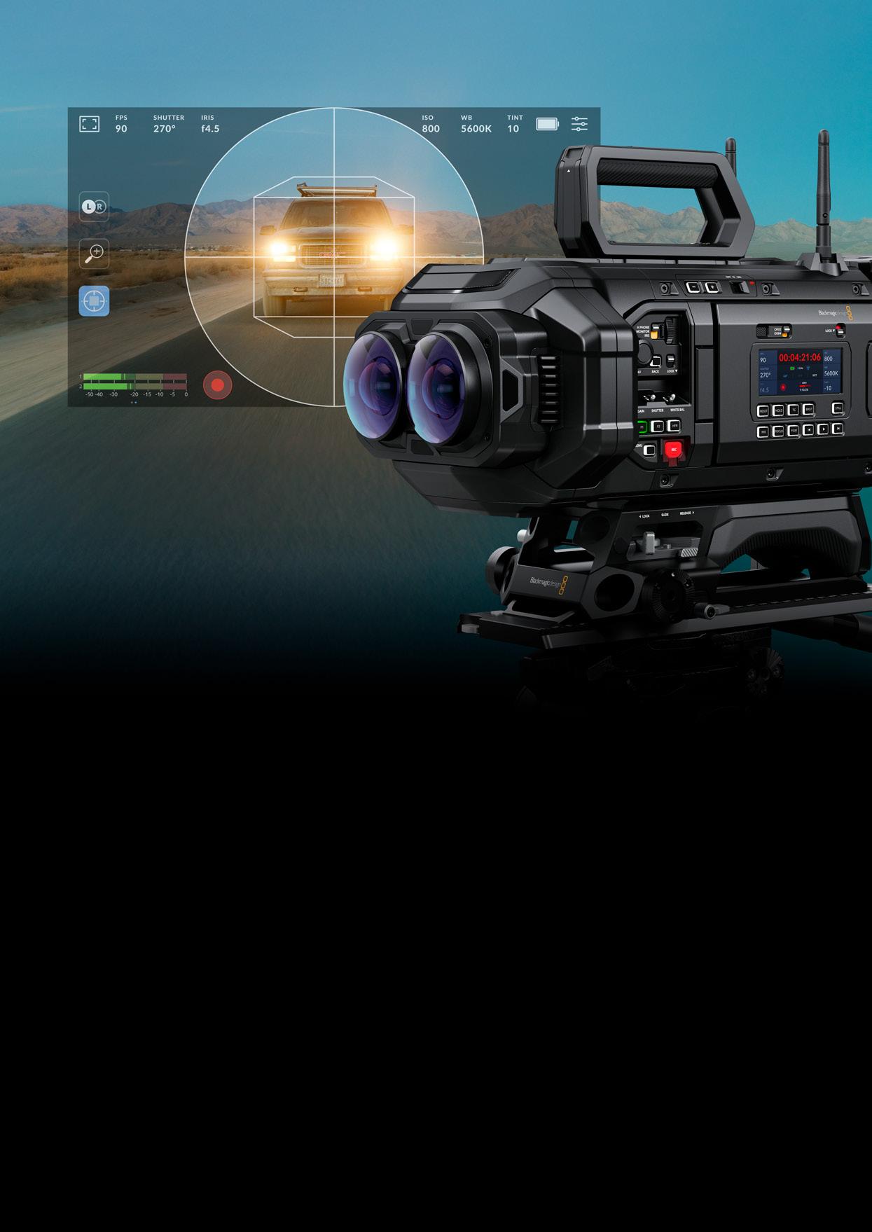 URSA Cine Immersive features revolutionary new sensors designed for incredible quality images at 8160 x 7200 resolution per eye! Using the same revolutionary RGBW sensor design as URSA Cine, the new dual sensor layout features larger photo-sites, delivering an astounding 16 stops of dynamic range! Now you can capture more detail with a wider dynamic range than ever!