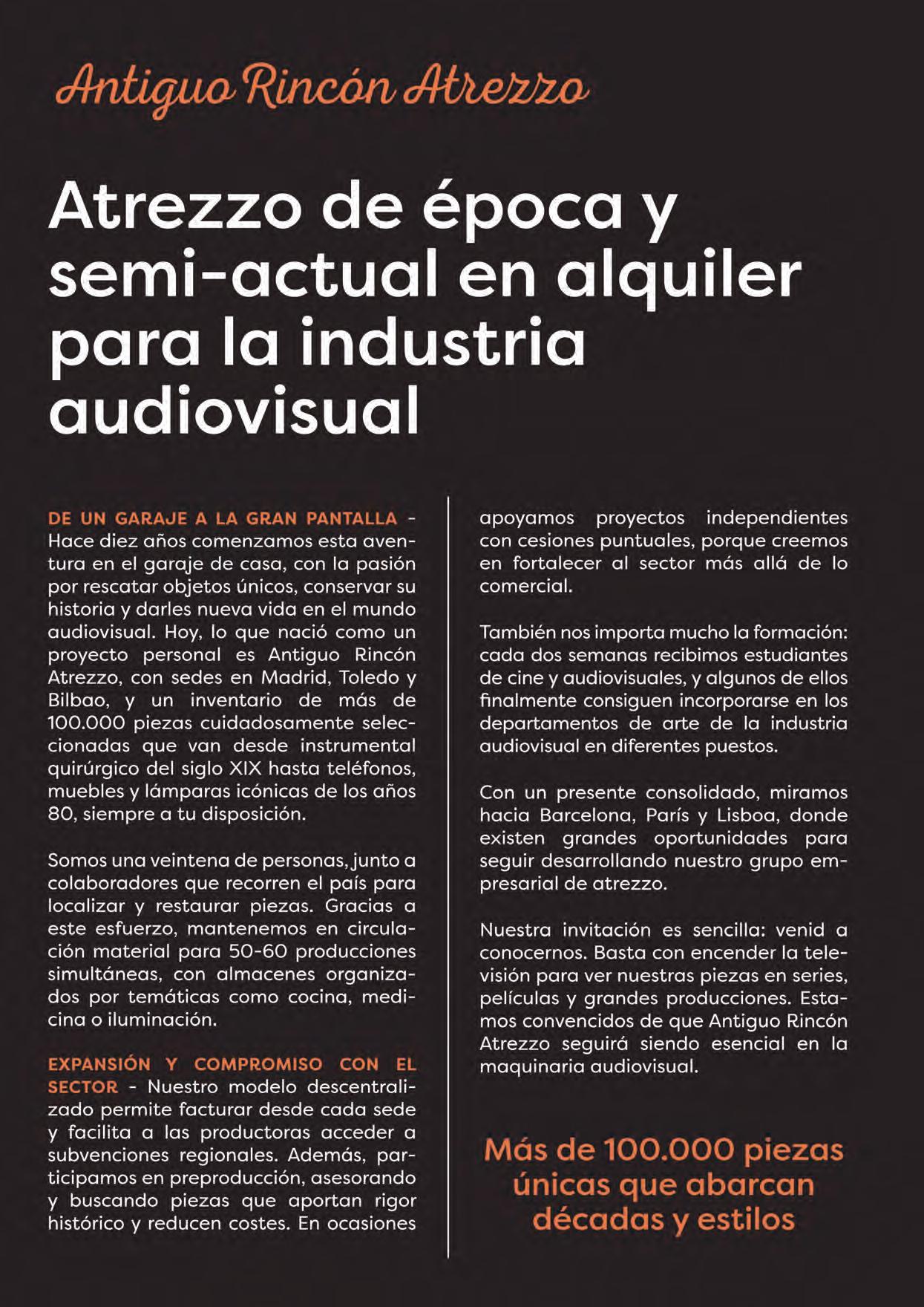 nos lanzamos con una nueva hornada de proyectos en desarrollo y WIP que buscan socios de coproducción y distribución. Son 26 proyectos muy variados, ya sean largometrajes de ficción, largos documentales, cortos o series, y con los que ofrecemos una ventana alternativa para descubrir producciones interesantes a las que sumarse y una forma diferente de networking con la que promocionar proyectos. Además, en este año, además de un cambio en el diseño gráfico de la presentación de los proyectos, debutamos una colaboración con la empresa de alquiler de atrezzo y mobiliario Antiguo Rincón a través de la cual los proyectos participantes pueden beneficiarse de un bono. En este sentido, estamos abiertos a futuras alianzas con otras empresas para seguir progresando con esta iniciativa.