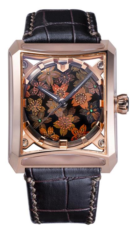 Mostrador com técnica de lacagem e pintura Urushi, pelo mestre Junishi Hakose O modelo Horizon GEN DLC tem uma versão de aço revestido a DLC preto, limitada a 25 exemplares