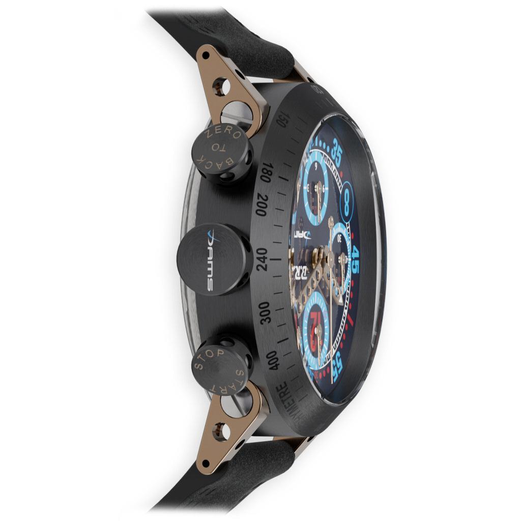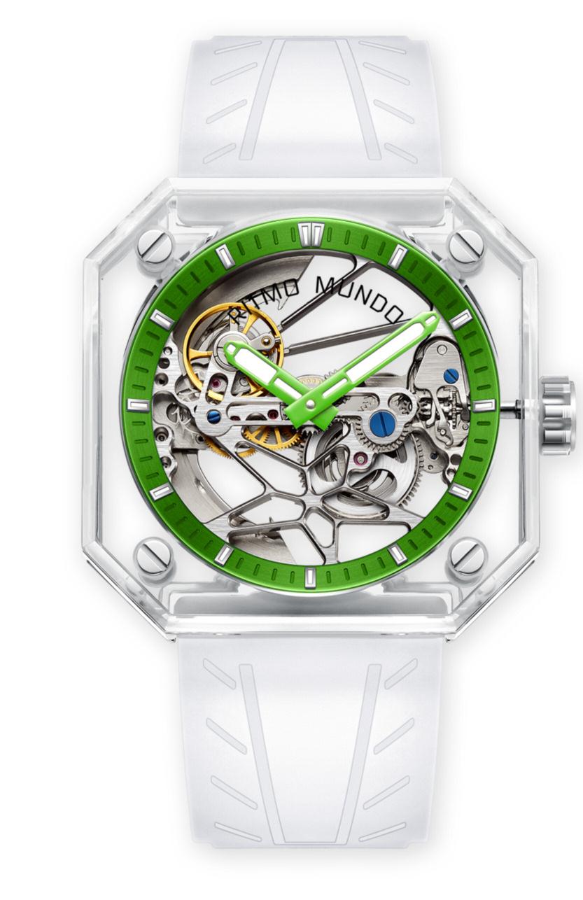 Especialmente produzido para o mercado português, em parceria com a Garagem Aurora, do Porto Fundada em 1946, sempre trabalhou no segmento dos carros desportivos O mais famoso é o Aurora Spider, uma costumização de um Porsche Carrera 906 de 1972, e em cujas linhas o relógio de inspira Caixa de 46 mm, de aço, revestido a DLC brilhante ou mate Calibre automático
