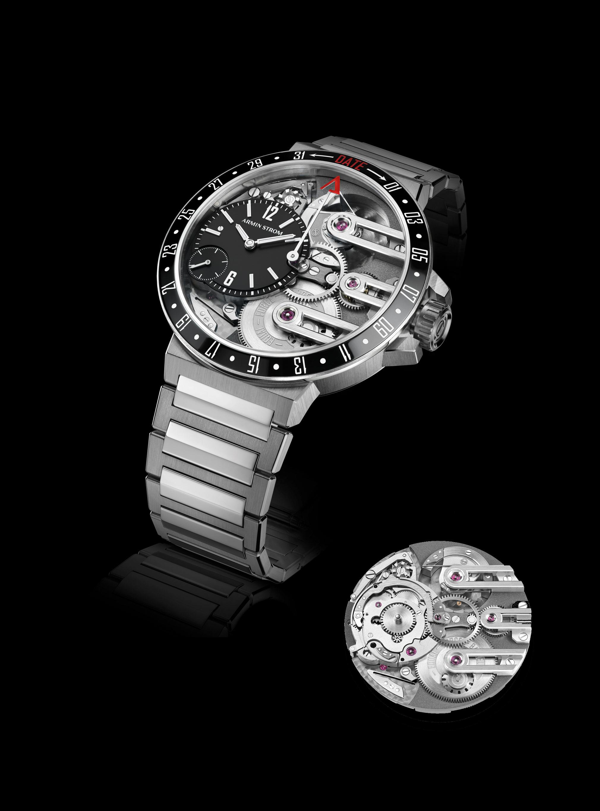 calibre automático, com micro-rotor e 72 horas de autonomia horas, minutos e segundos descentrados data pela luneta (sistema de roda de colunas) caixa de 43,4 mm, de aço, luneta de cerâmica, vidro de safira na frente e no verso preço: 31 mil euros