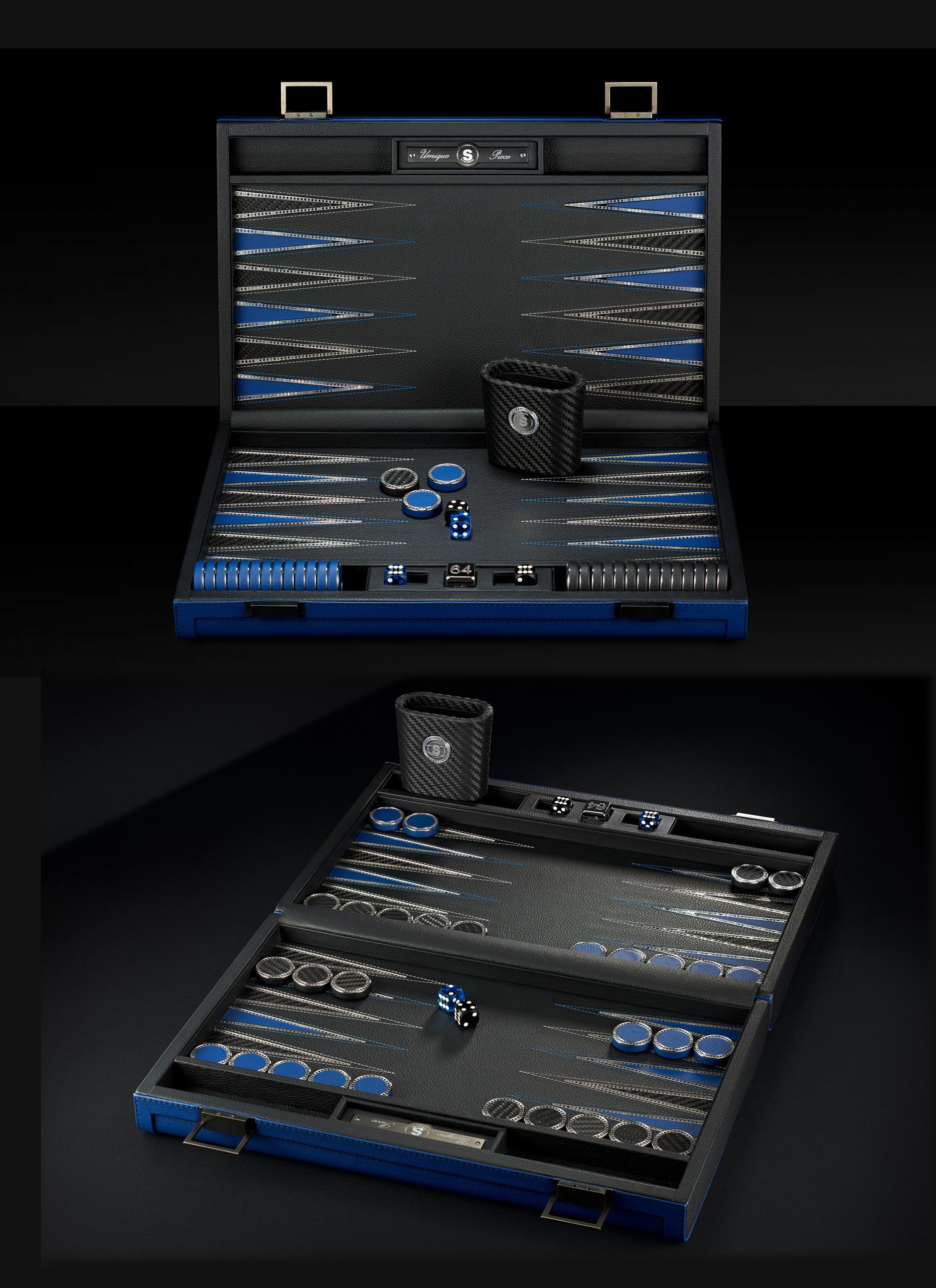 Um jogo de gamão “Haute Couture”, com diamantes negros e safiras azuis