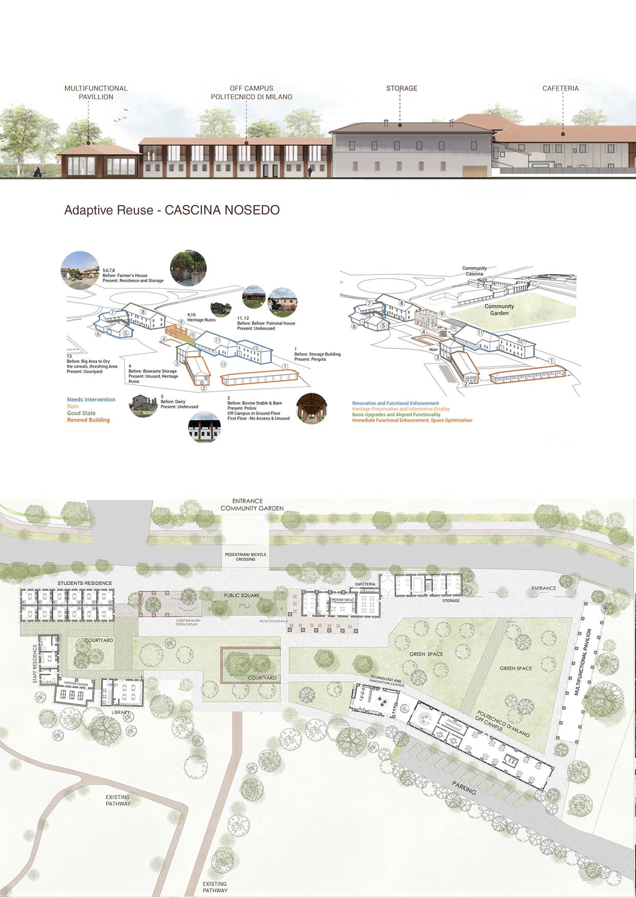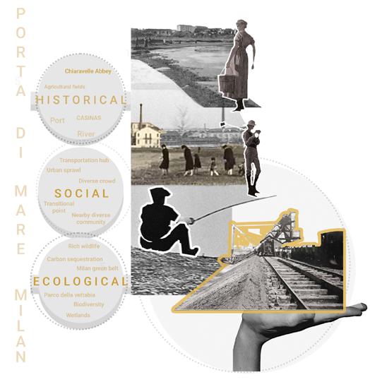 Porto di Mare is envisioned as a vital link in Milan’s green belt on the city’s suburban edge, forming a distinct threshold between urban density and rural openness. This proximity of nature to the city centre is a powerful asset for 21st-century urbanism, offering both ecological value and social potential. The project embraces this opportunity to regenerate the landscape while respecting its layered historical identity. Once a peripheral gateway, Porto di Mare becomes a contemporary commons reconnecting fragmented green spaces, revitalizing cultural memory, and supporting biodiversity. Through careful restoration and adaptive reuse, the area transforms into a resilient landscape that acts as a buffer, a connector, and a catalyst for future development.