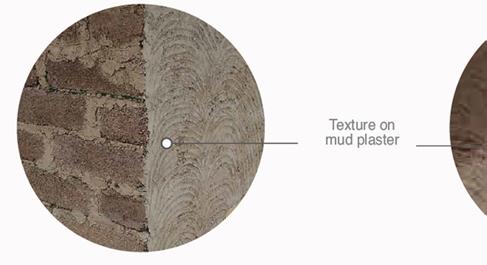 A mixture of clay and sand can be made and added on top of the mud plaster and can be used in the interior finish to achieve a smoother texture