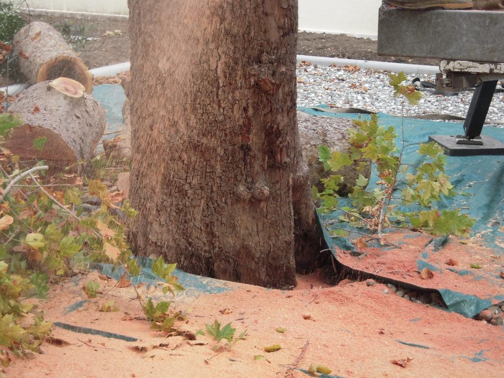 Il terreno intorno alle piante da abbattere va ricoperto con robusti teli di plastica, allo scopo di raccogliere la segatura ed il materiale di risulta
