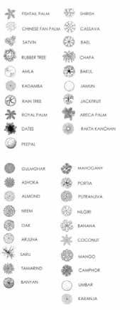 Coconut tree Banyan tree Palmyra tree Religious establishment FIief Farmlands Fort