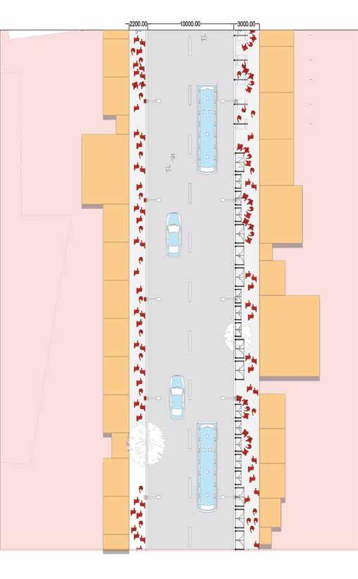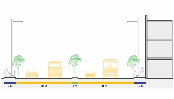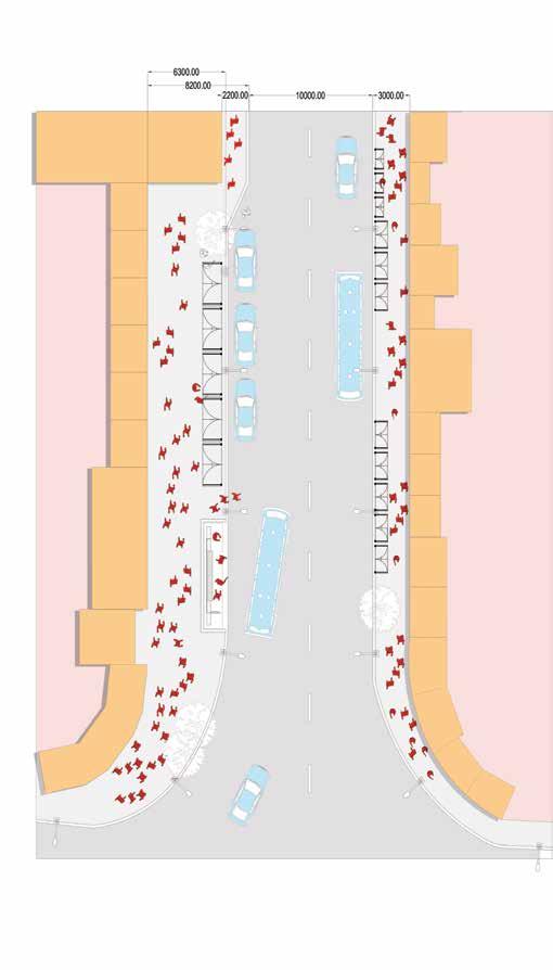 The proposal limits vendors to one side of the road, allowing commuters to follow a clear path. The wide sidewalks will be converted into trade areas, and the narrow lanes across the road will be converted into primarily pedestrian sidewalks.
