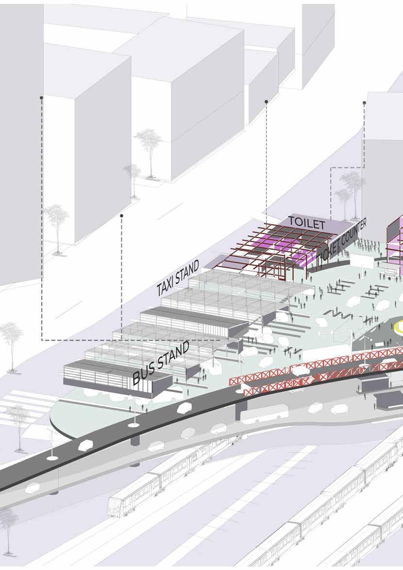 A skywalk for the floating population will directly link to the railway station making it convenient and time-saving for office, school, and university people. The sole Purpose of this skywalk is to segregate the floating and market population thus reducing the tension on roads and footpaths.