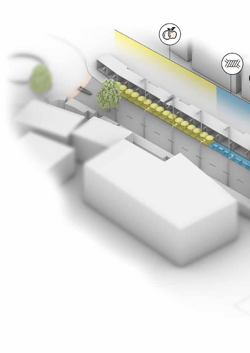 The proposal consists of design elements that can be used as furniture that can also delineate spaces for individual hawkers.