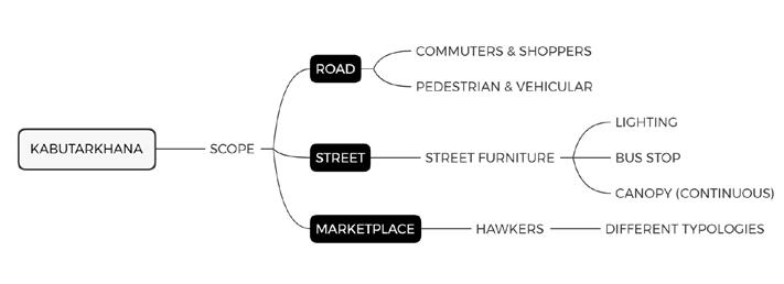 • Restricting vehicular access to Kabutarkhana road generates more space for pedestrian movement
