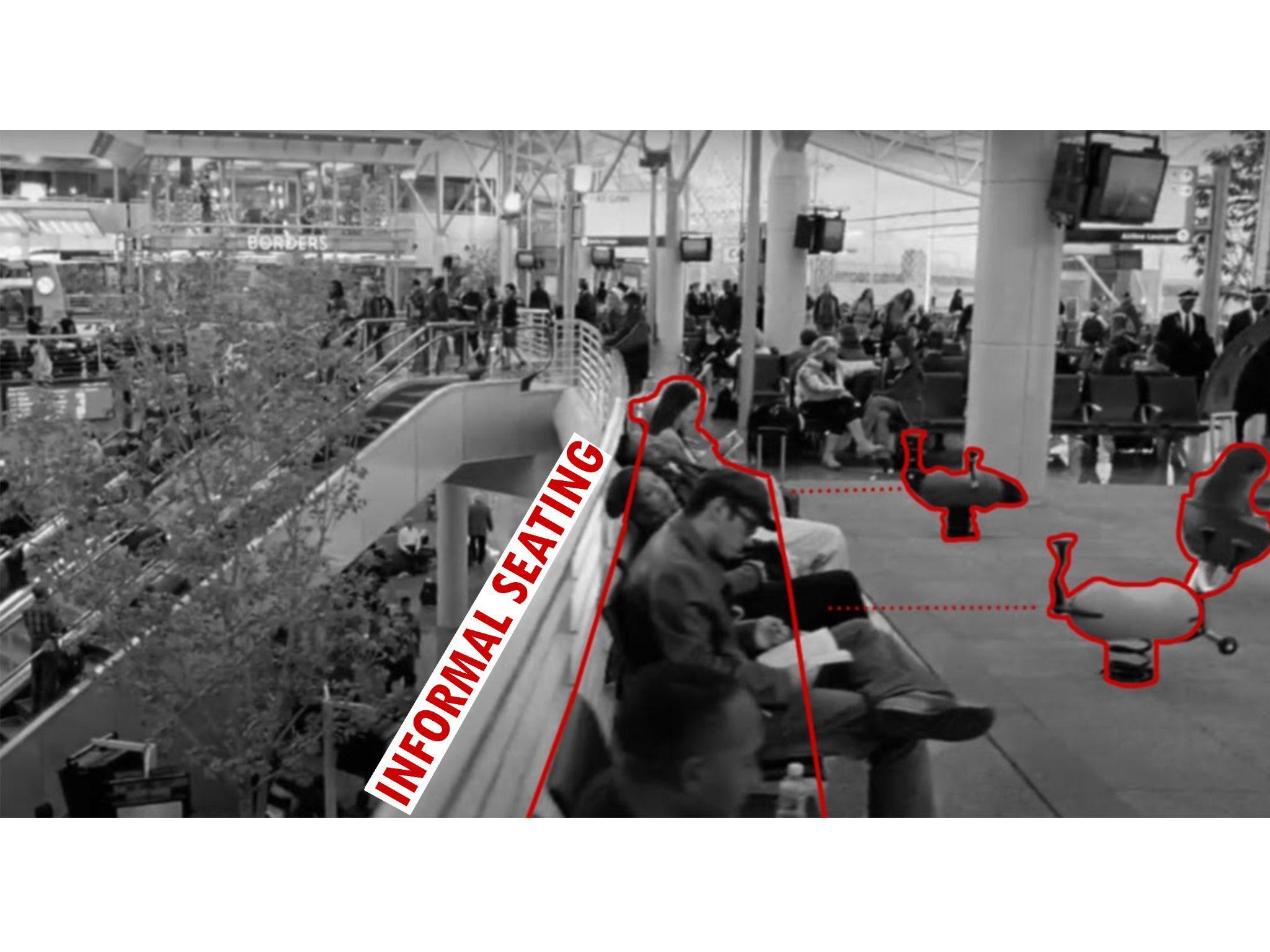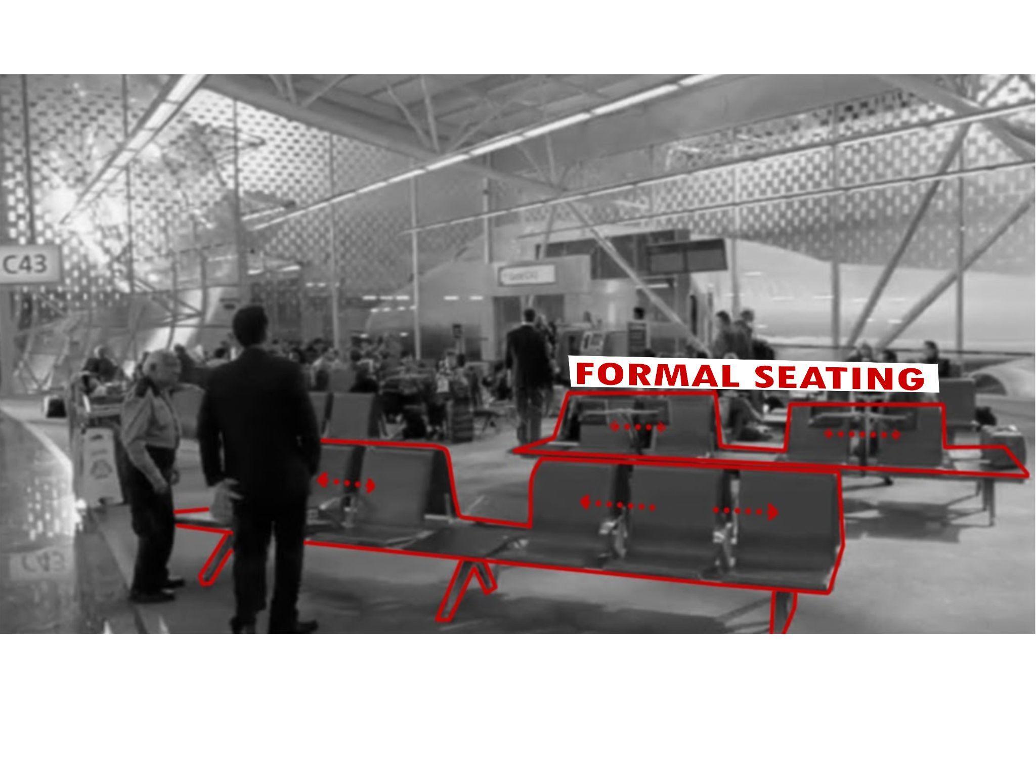 Visually holding points (the flight schedule), Waiting points (the benches), Pausing points (the railing) etc are induced in place making where desires tend to alter the behaviour of place customizing experiences to each user in a frame of time.