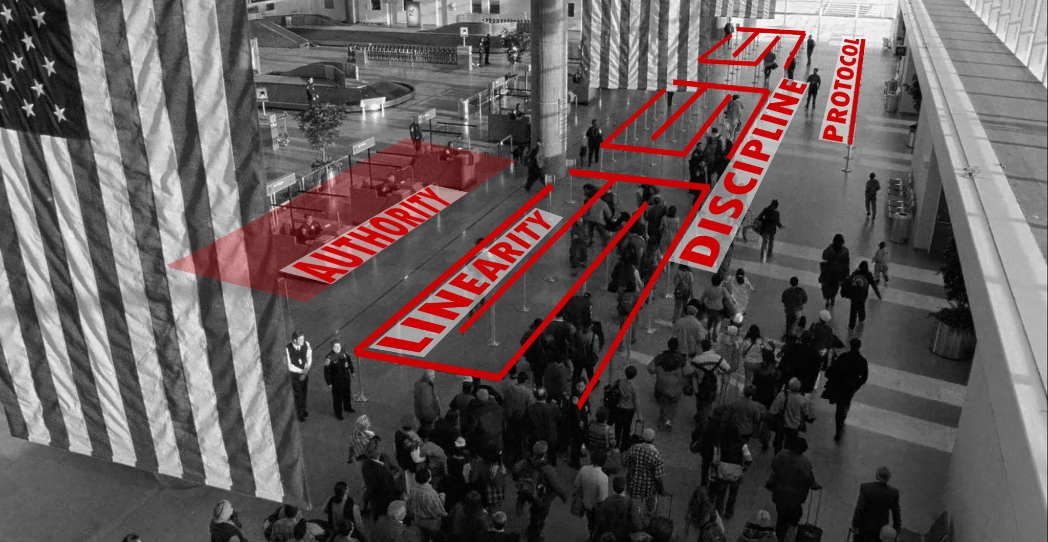 The practices are also seen through the authority of airport security and officials as they control the functioning social content of the building and decide how people engage with the space.