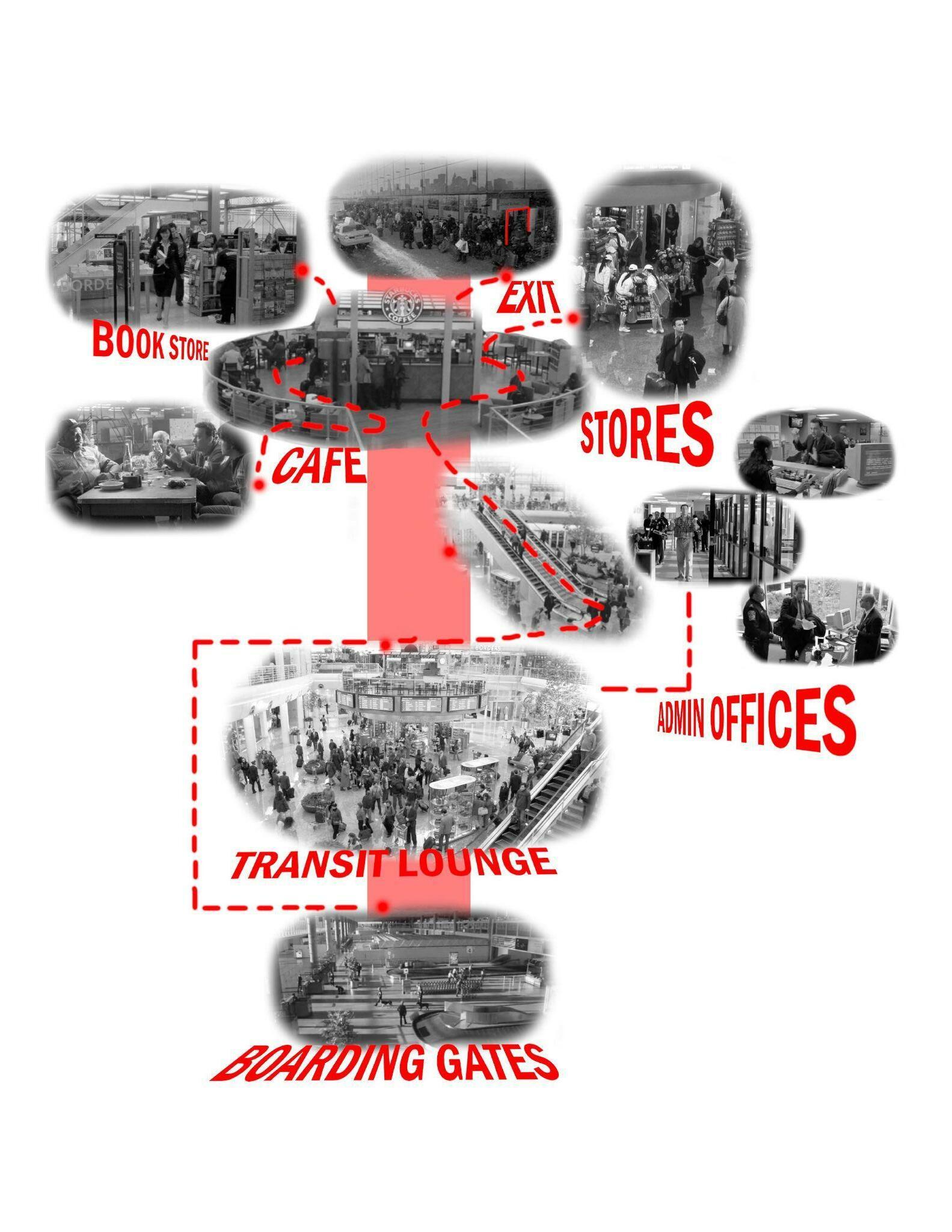 passengers, to this system. This route is used to create a non necessity desire in the minds of the passengers by the addition of a shopping area, lounge, food joints, bookstores, making an entire mini mall thus making the airport vicinity a complete assemblage.