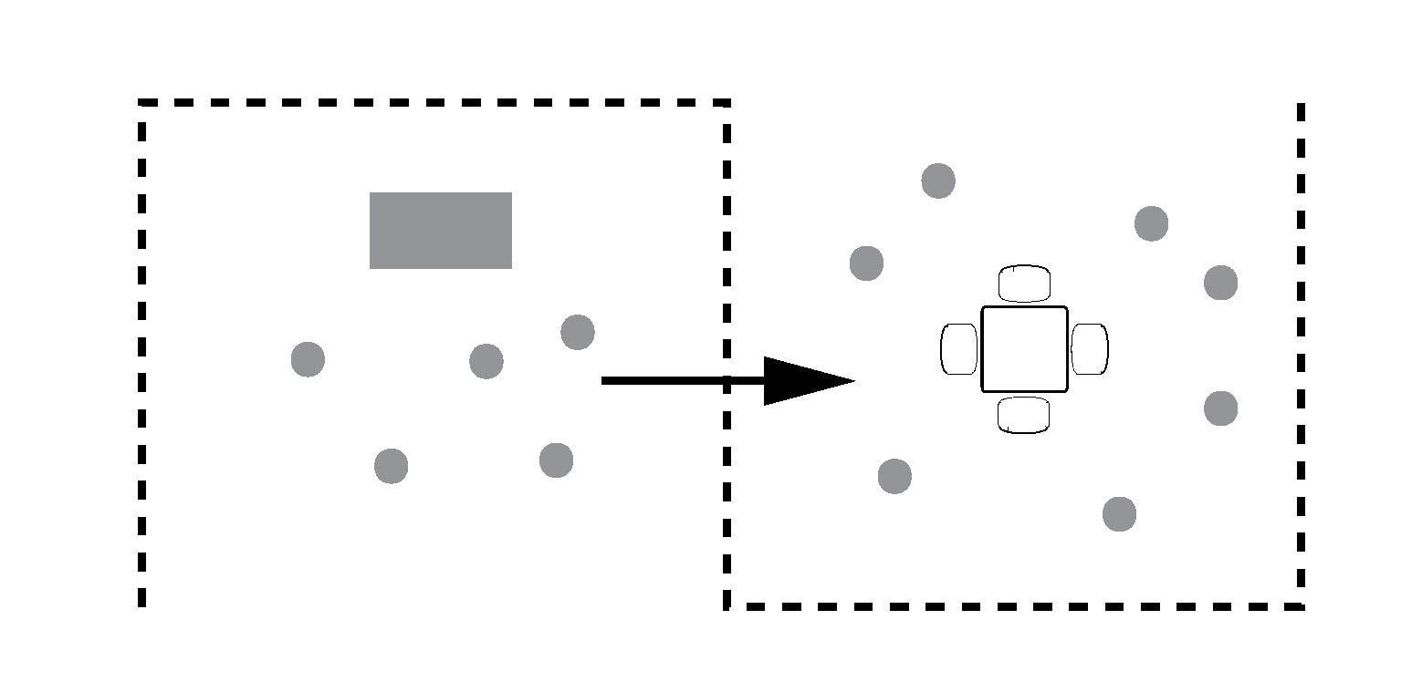 Socio-petal - that is designed to bring people together and direct attention towards the center.
