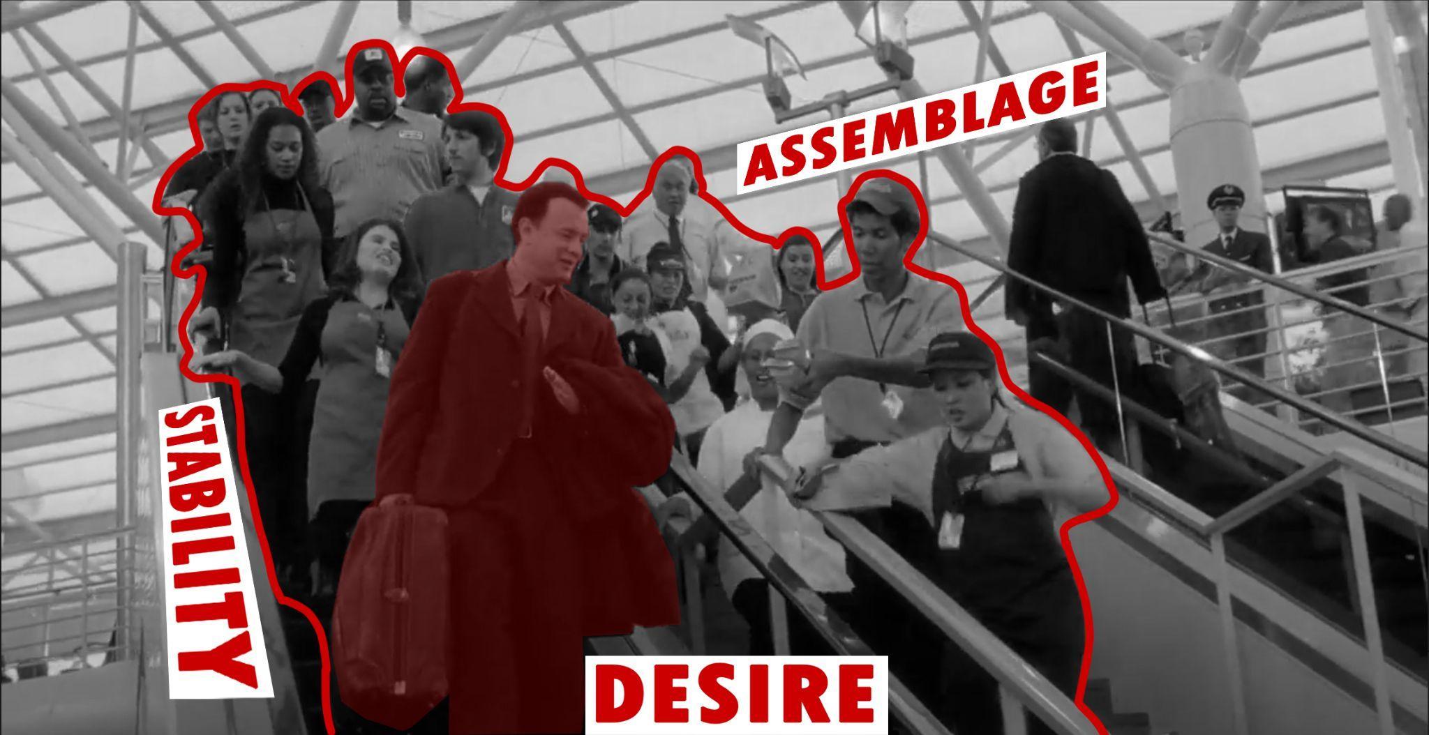 Thus the the way the protagonist uses the setting of an airport is a great example of how a place can become an intensive multiplicity. The space acts as a subjective place, for the other users that are there merely for travel purpose versus the protagonist who spends months living there. The added elements like the trolley which is totally functional for travellers becomes a means of earning for victor. The authentication of the place reduces for him with the passage of time and interaction. It creates a new lens of looking at this space and its assemblage of differences in the sense of place and the sociability that it forms.