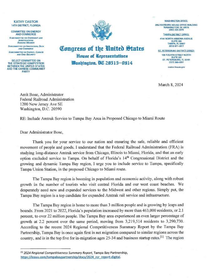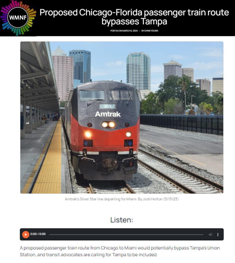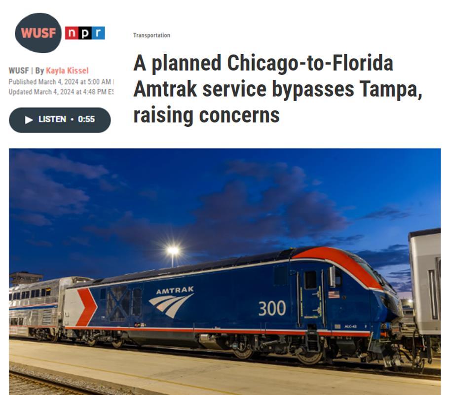 Tampa welcomed nearly 130,000 passengers last year. With just two trains a day!