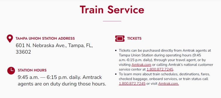 Tampa Union Station is the second busiest Amtrak train station in Florida.
