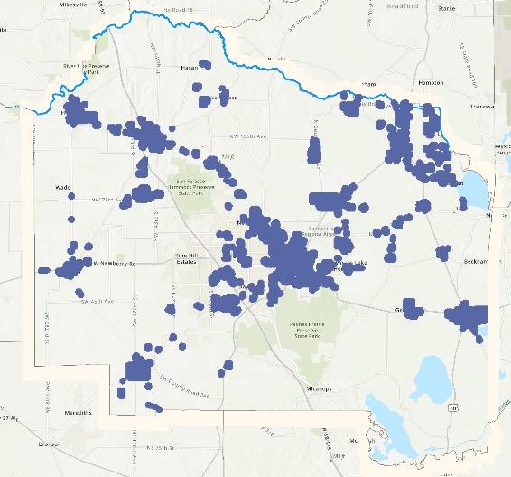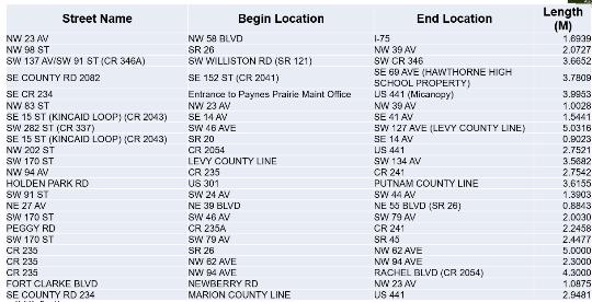 • Include Road Segments with 15 or more work orders for Surface issues as recorded in Alachua County’s CityWorks database (One work order may contain multiple potholes along the road segment).