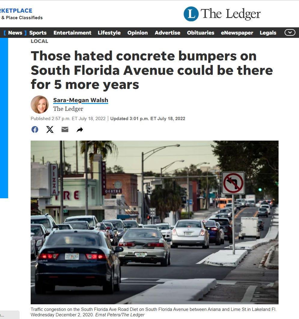 “The Lakeland CRA Advisory Board endorses the implementation of the South Florida Avenue lane reduction as a permanent configuration for this vital corridor in the heart of the Dixieland and gateway to Downtown CRA districts.”