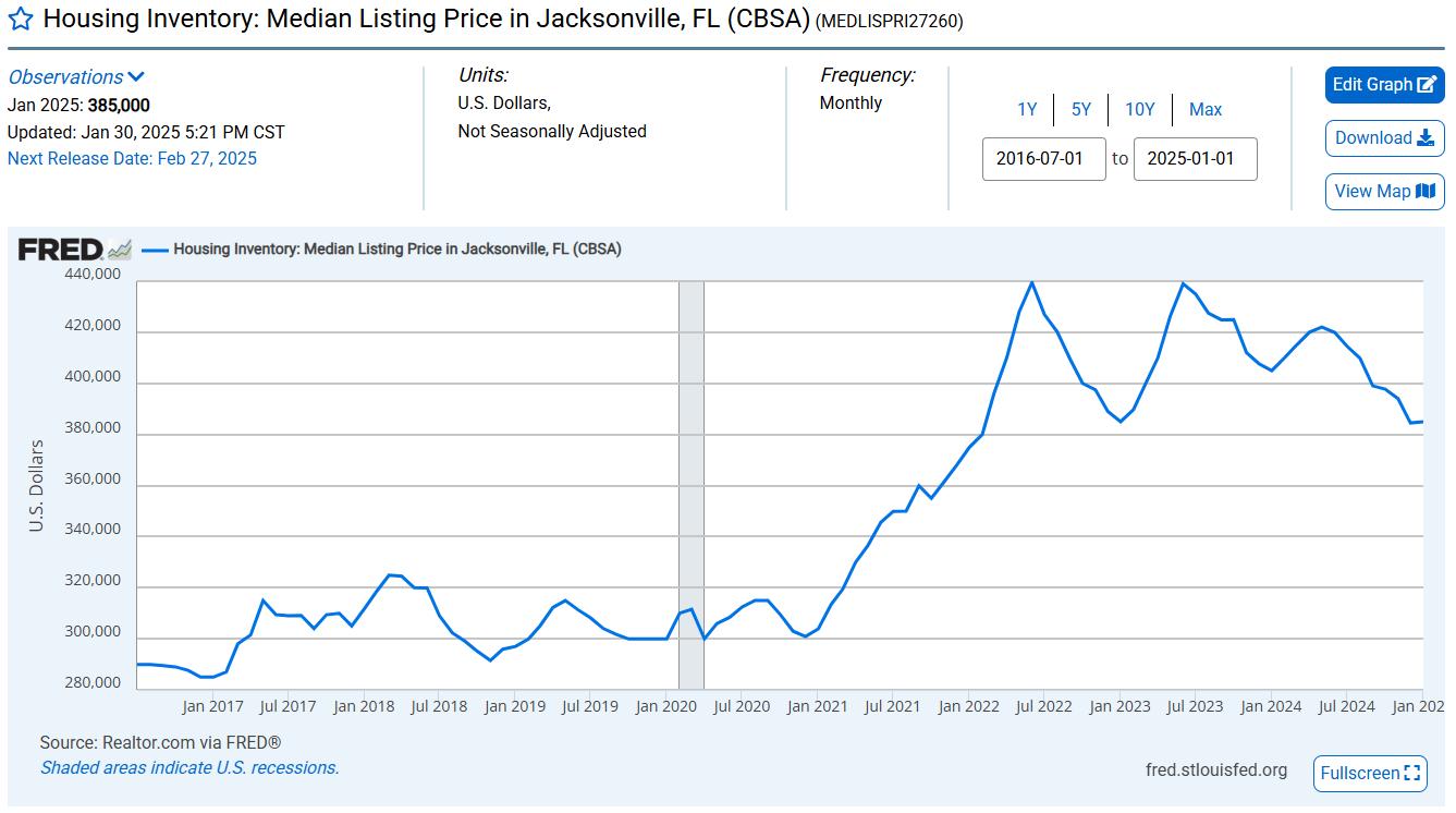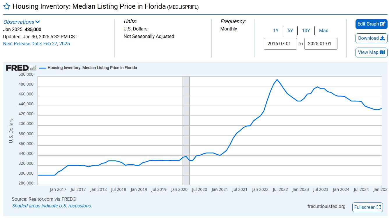 Housing Inventory: Median Listing Price in Florida (MEDLISPRIFL) | FRED | St. Louis Fed