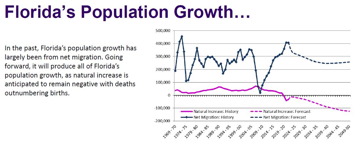 • Florida has returned closer to the ~300k+ annual population increase of the last several decades