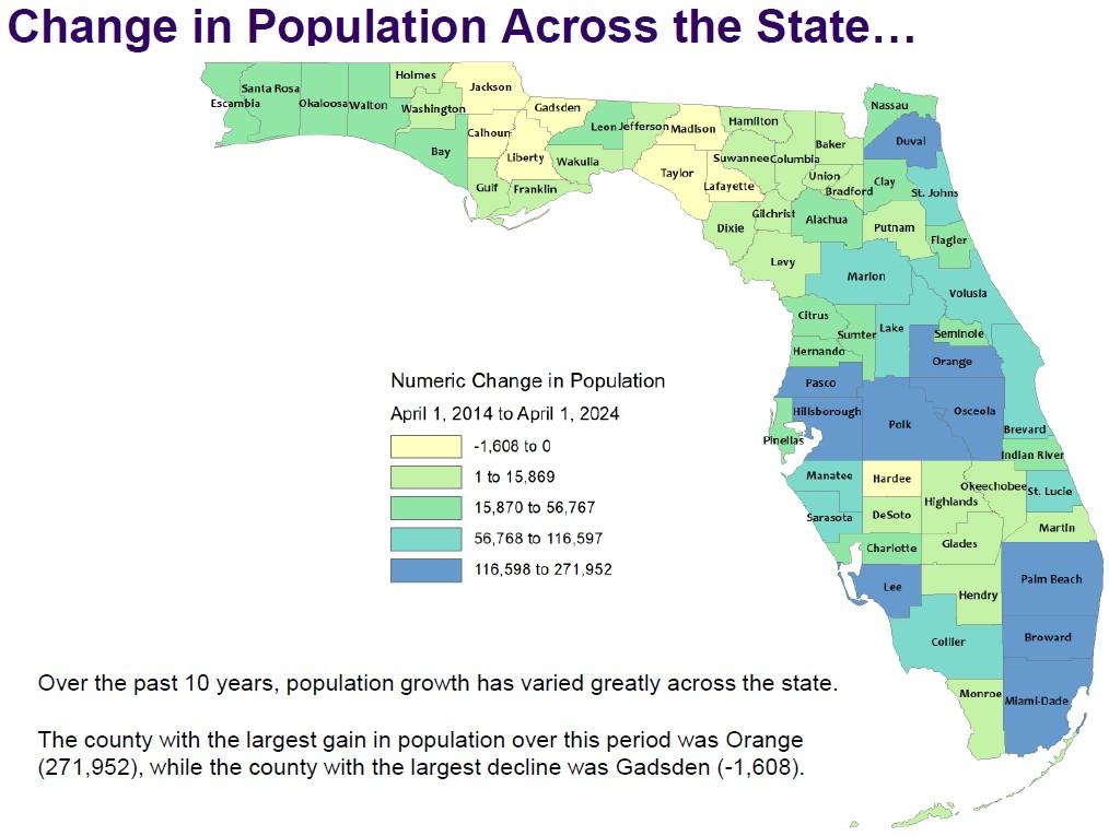 Florida has generally added ~3 million net new residents each decade since 1960 and the 2020s appear on pace to reach that again. Looking ahead, there is growing confidence that this historic net decadal change will end in the 2030s, mainly due to massive changes in family formation and fertility rates.