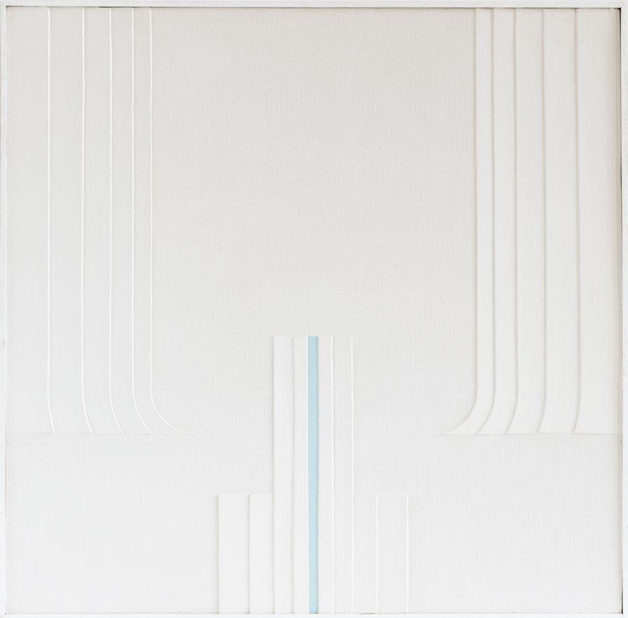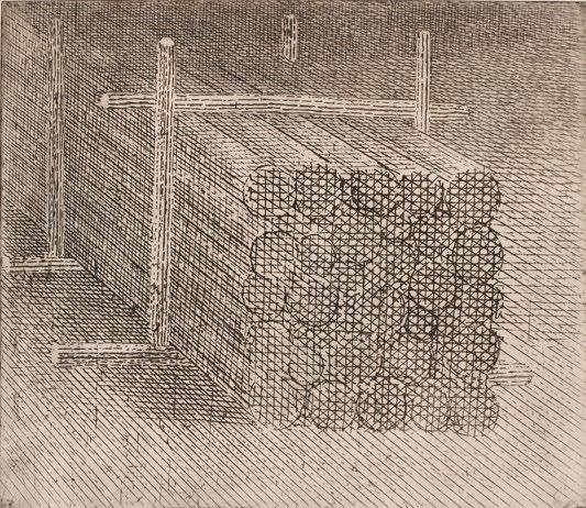 strukturální grafika, reliéfní tisk, papír, pasparta, rám, sklo, 23 × 24,5 cm sign. Puchnarová – P 1963