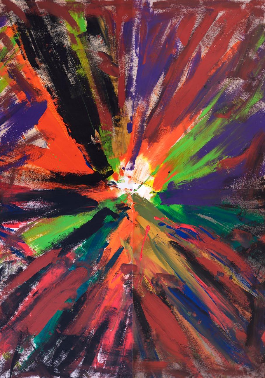 lak, pryskyřice, pigmenty, barviva, plátno, ø 100 cm sign. na rubu M. HOUSER 2022