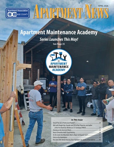 Apartment News is the publication of the Apartment Association of Orange County - a trade association focused on the needs of the multifamily housing industry - and the businesses that service the multifamily housing providers in Orange and Riverside Counties. For more information, please visit our website - http://www.aaoc.com For information on advertising, please contact our Advertising & Media Sales Director, Debbie DiBernardo, at (714) 245-9500 or debbied@aaoc.com