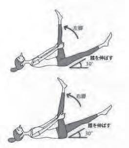 平躺,右腳舉成90度,左腳保持30度的姿 勢。雙手要抱住90度的腳,手腳伸直,背部 也要伸直,一個動作維持30秒,然後換過來 再做一遍。可以訓練到腹部的肌肉,大腿的 肌肉也能得到很好的伸展。