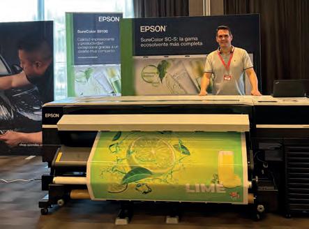Epson mostró en Berlín la última gama de soluciones de impresión con un enfoque especial en la personalización, la microproducción y tecnologías de impresión textil más sostenibles. Destacó la renovada gama de signage, con nuevos modelos que vienen a reforzar el crecimiento de Epson en este sector. Se presentó por primera vez en FESPA, la impresora ecosolvente SC-S8100 de 64 pulgadas para comunicación gráfica y rotulistas. Junto a las recientemente presentadas SC-S7100 y SC-S9100, la SC-S8100 es la sucesora de la exitosa serie S60600, diseñada para responder a las exigentes y cambiantes necesidades de los profesionales de la rotulación, ofreciendo impresiones de alta calidad con mayor productividad y fiabilidad en comparación con su predecesora. Con un nuevo cabezal de impresión MicroTFP PrecisionCore más grande, la productividad puede aumentar hasta un 30% en función del tipo de material que se utilice, en comparación con la SC-S60600, lo que garantiza una rápida finalización de las tareas de impresión de gran volumen sin comprometer la calidad. Otras novedades fueron las impresoras fotográficas SureColor P7300 (24”) y P9300 (44”), diseñadas para dar respuesta a las necesidades de tiendas de fotografía, pruebas de impresión y reproducciones artísticas. Los visitantes tuvieron también la oportunidad de saber más sobre la SureColor G6000 , con la que Epson entra en el mercado del Direct-to-film (DTFilm).