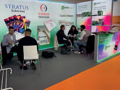 Entre las novedades, atrajo gran atención el nuevo Poly-banner y, aún más, el Poly-rafia/blackback , un material innovador diseñado específicamente para vallas publicitarias. Extremadamente ligero, ecológico y caracterizado por su excelente relación calidad-precio y, sobre todo, por su excepcional resistencia mecánica. Su robustez le permite soportar incluso condiciones climáticas extremas, como fuertes vientos, lo que lo hace ideal para aplicaciones en exteriores, incluyendo barreras de protección en pistas de esquí.