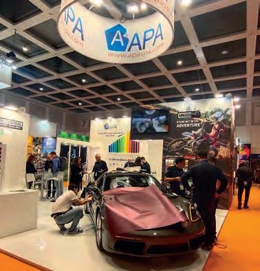 Otra gran novedad fue la línea APA BOAT WRAPPING, films adhesivos de alta calidad y fiabilidad dedicados a la decoración y equipamiento de barcos y yates. En constante evolución también está la línea APAMBKPRO, films ideales para motos y karts con nuevos efectos holográficos, laminados 3D y Ultra-grip resistentes a golpes y arañazos. No se deben olvidar los films históricos para impresión y corte en el ámbito gráfico, enriquecidos con la nueva serie REPOFAST. Este material, caracterizado por una adherencia inicial extremadamente baja, permite una reposicionabilidad excepcional, eliminando la necesidad de utilizar agua durante la aplicación.