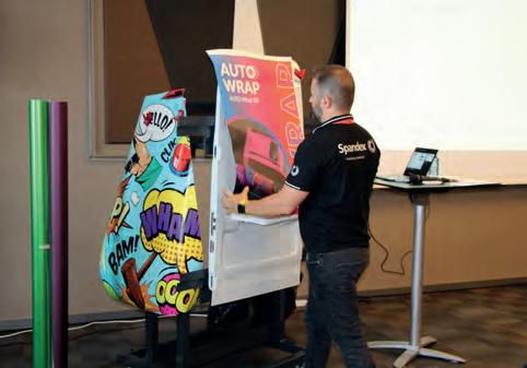 HEXIS presentó en FESPA sus más recientes innovaciones en torno a la rotulación de vehículos, la protección de superficies y de carrocerías (PPF, del inglés “Paint Protection Film”), la señalética, la estampación textil, la decoración de interiores o la arquitectura, entre otros ámbitos. Los visitantes pudieron conocer las posibilidades técnicas y creativas de sus films premium por excelencia: los films coloreados e imprimibles SKINTAC para el wrapping de vehículos, con su gran abanico de nuevos colores y acabados, como el efecto mojado “wet”. Otra de las primicias que se presentaron en exclusiva fue la nueva serie de films de última generación HXONE , diseñada para revolucionar el car wrapping y llevar la personalización automotriz a otro nivel de excelencia. El programa de demos en directo culminó con el estreno del nuevo film CANDYFENCE CF001 que permite combinar en un solo producto color y protección. Este film multicapa de 195 micras presenta un acabado 3D en fibra de carbono y es resistente a los impactos con la capacidad de regenerarse solo.