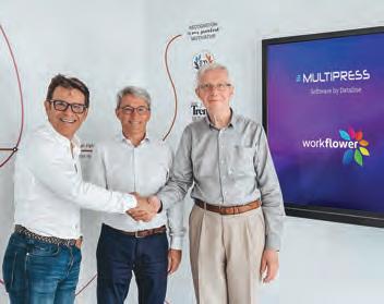 Dataline anuncia la adquisición del software Workflower y todos los activos asociados. Workflower es el producto de software de Jos Dechamps, quien, tras una larga carrera en AgfaGevaert, fundó su propia empresa junto con Tom Vermassen como director ejecutivo. Dataline y Workflower han colaborado estrechamente durante más de cinco años. Algunos componentes de la tecnología Workflower constituyen hoy en día la base de módulos exitosos dentro de la solución MultiPress, tanto para producción en pequeño como en gran formato. En la imagen, Dirk Deroo, Director General de Dataline, junto a Tom Vermassen y Jos Dechamps, de Workflower.