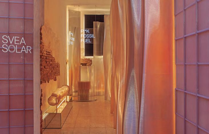 ESPACIO SVEA SOLAR – CONCEPTUAL «REFLEXIÓN», MARTA SÁNCHEZ ZOROZA Y PABLO DACAL. MATERIALES CLÁSICOS E IMPRESIÓN 3D SE UNEN EN ESTE ESPACIO DONDE DESTACA LA REFLEXIÓN DE LA LUZ INCIDIENDO EN LOS DISTINTOS ELEMENTOS. SE HA UTILIZADO LA IMPRESIÓN 3D CON PLÁSTICOS RECICLADOS (PETG) PARA GENERAR ESTRUCTURAS PARAMÉTRICAS. (FOTOS: CASA DECOR, ASIER RÚA).