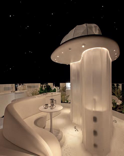 ESPACIO BANG & OLUFSEN – SALÓN “MERAKI”, MÍRIAM ALÍA MATEO. UN REFUGIO ENVUELTO EN UNA EXPERIENCIA SENSORIAL CON GRADUACIÓN DEL COLOR, LA LUZ Y EL SONIDO, CREANDO UNA ATMÓSFERA ENVOLVENTE. REVESTIMIENTOS CERÁMICO Y MURALES E IMPRESIÓN 3D.