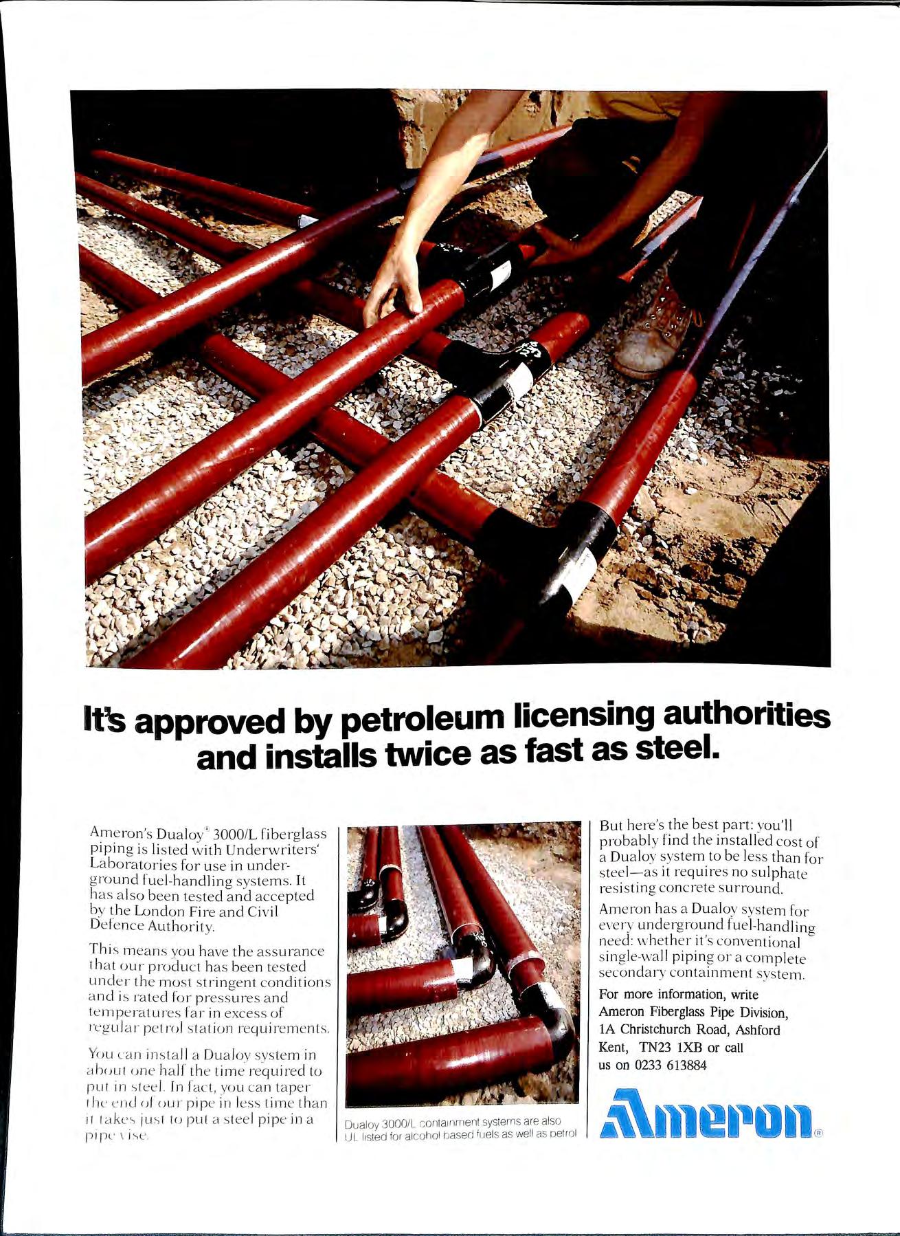 For more information, write Ameron Fiberglass Pipe Division, lA Christchurch Road, Ashford Kent, TN23 lXB or call us on 0233 613884