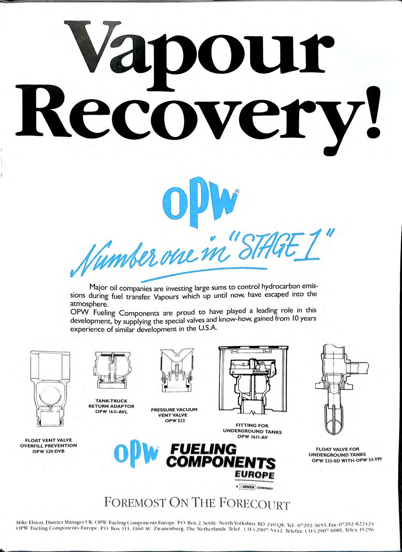 OPW Fueling Components are proud to have played a leading role in this development, by supplying the special valves and know-how, gained from I0 years experience of similar development in the U.S.A