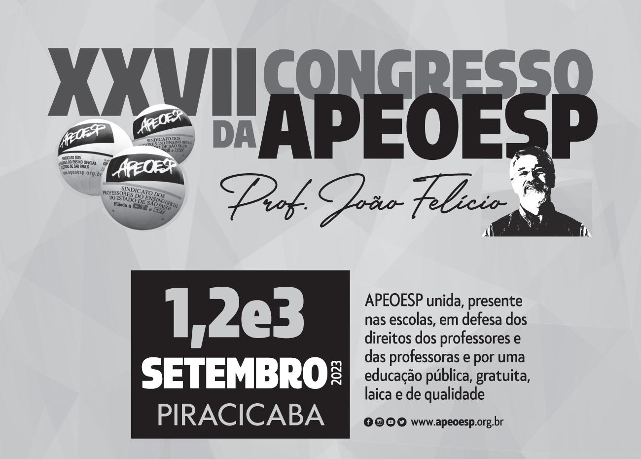 RG no XXVII Congresso da Apeoesp Prof. João Antônio Felício, a realizar-se em Piracicaba, no Engenho Velho, no período de 1 a 3 de setembro de 2023.