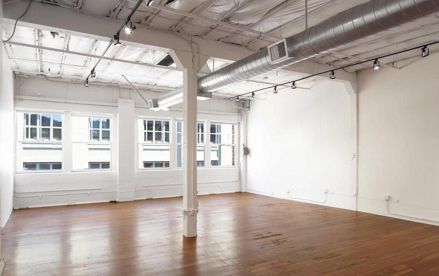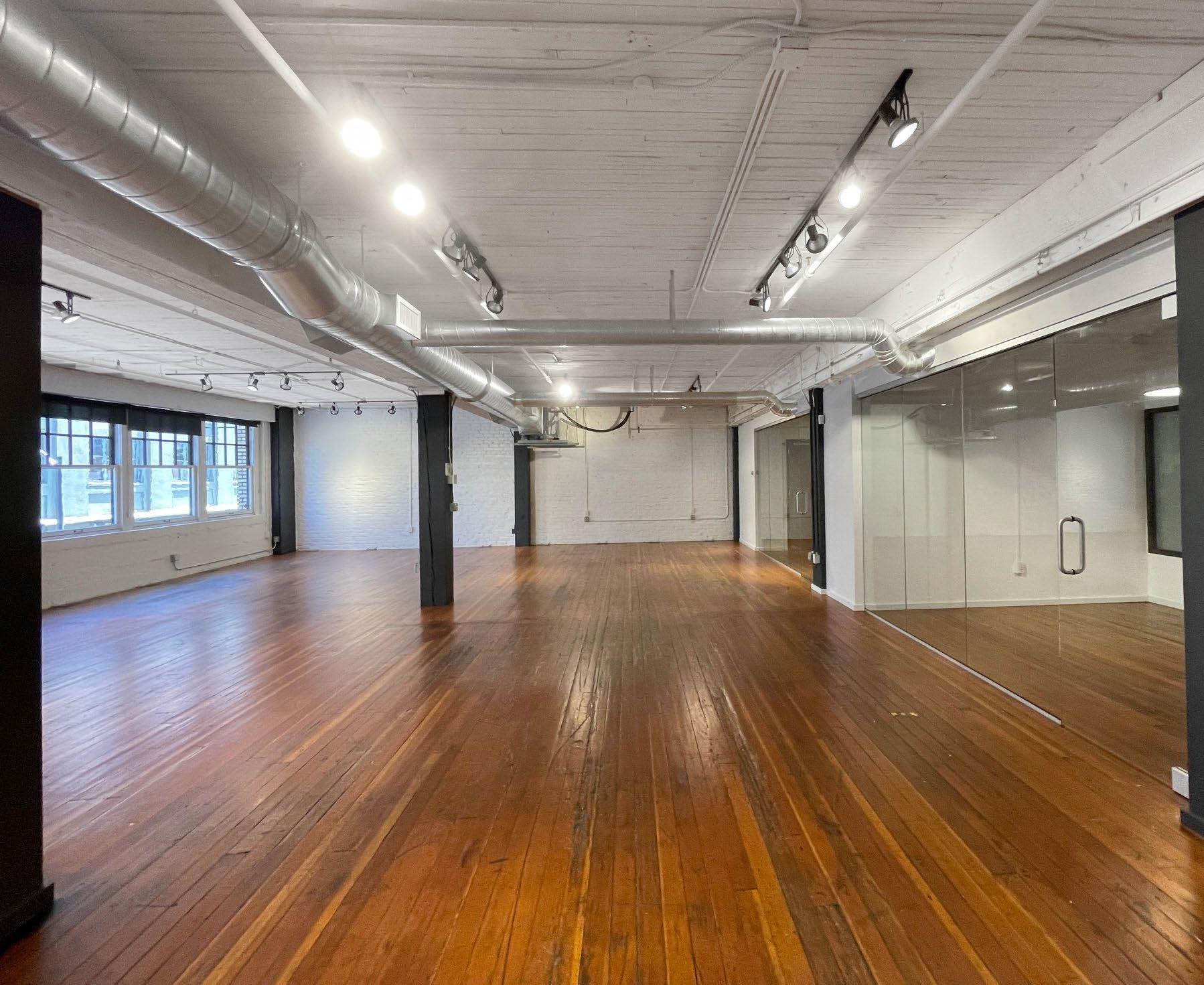 » Exposed ceilings, modern lights and hardwood floors