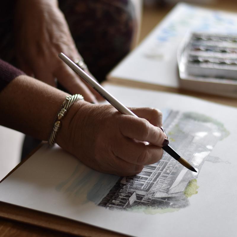 For the past 25 years, DeVeas has enjoyed creating a multitude of drawings of prominent landmarks, historical churches and wedding venues in the Annapolis area. Notable buildings include the United States Naval Academy, Historic Inns of Annapolis, Chesapeake Bay Beach Club and the William Paca House.