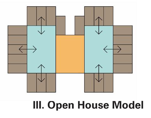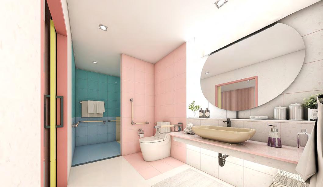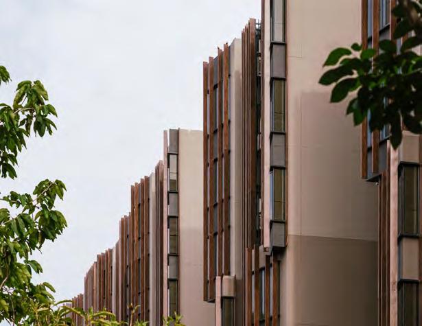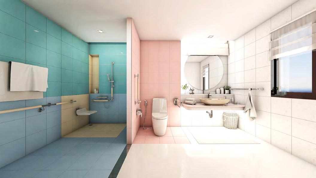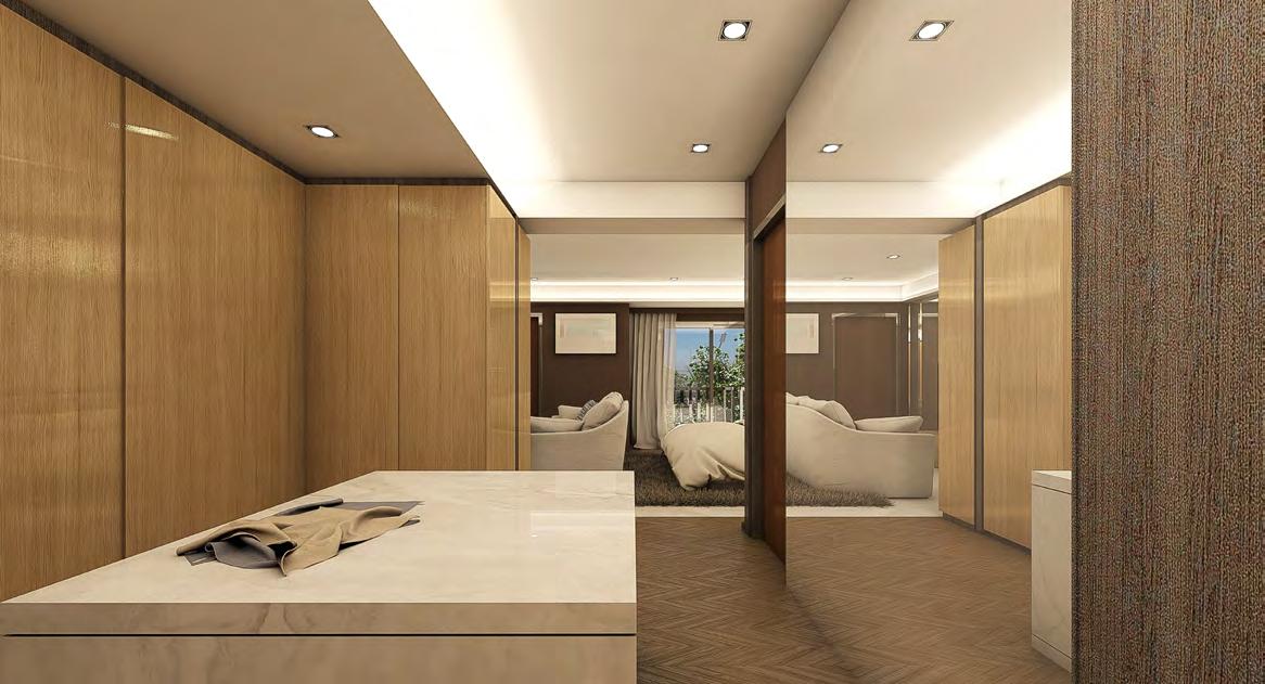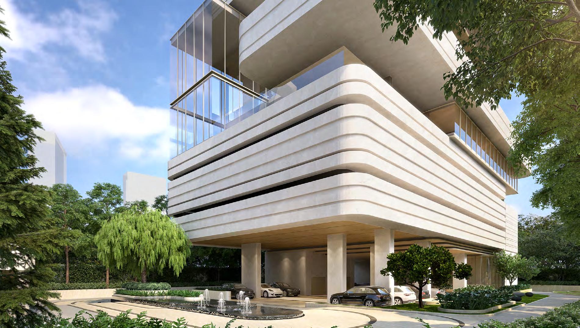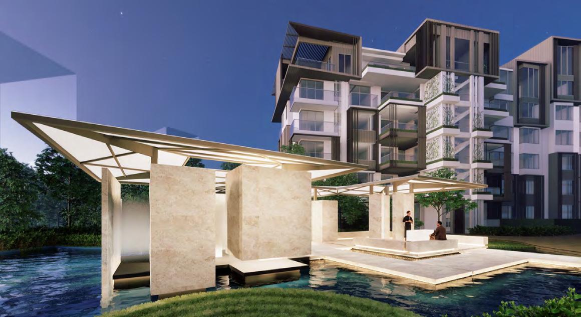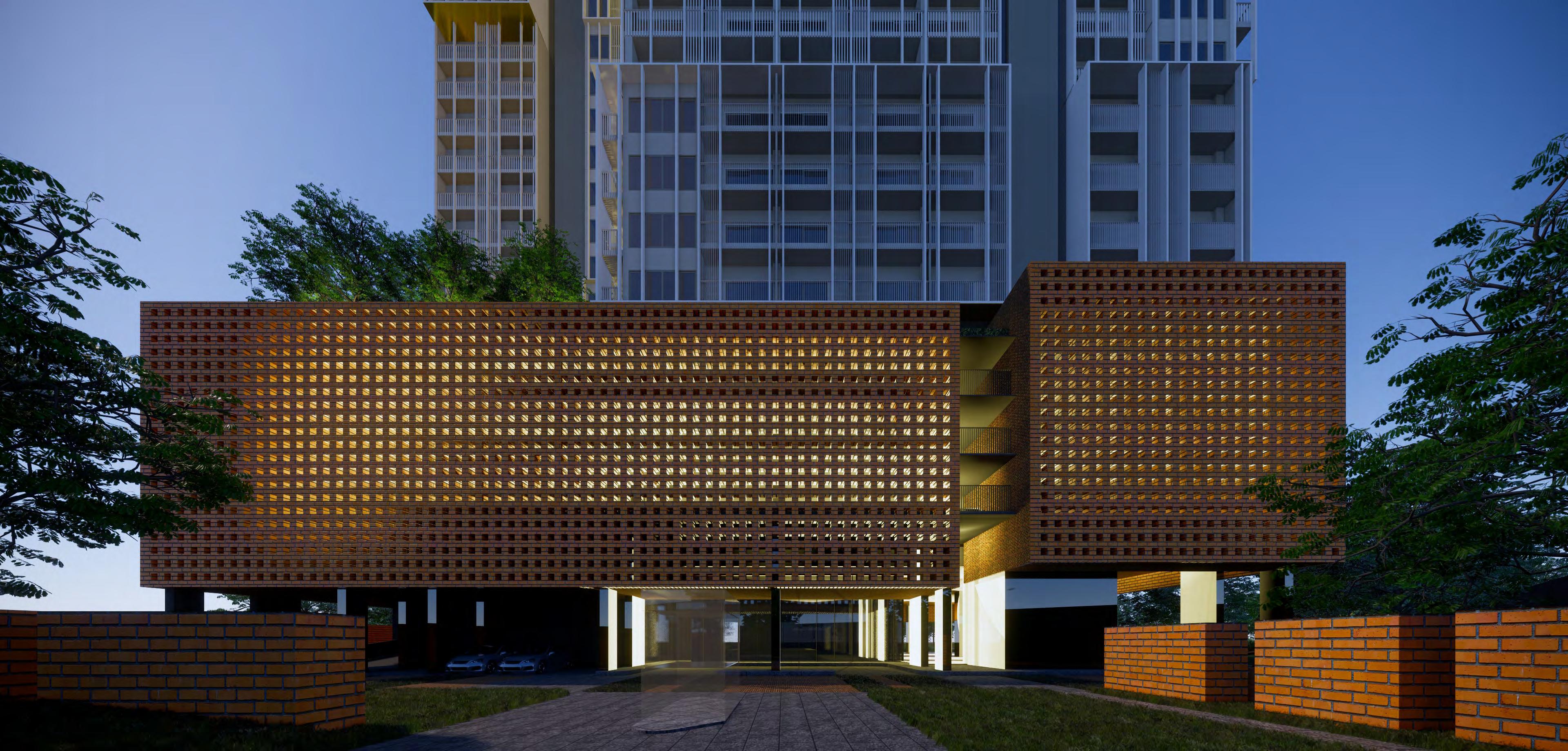 Complex combinations of Horizontal shading fins, and Angled Bay Windows inserted in between create a fine contrast to the overall architectural composition. This also reflects complexity in spirits of residential high-rise. Above all, these elements make this building an Energy Efficient Archi tecture. As windows and terraces are protected from glare, excessive Sunlight and rain, it also helps to reduce the energy for air conditioning. Large windows can remain open without blinds or curtain, allowing Sunlight to fuse into the space during the day, reducing the energy for internal lighting.