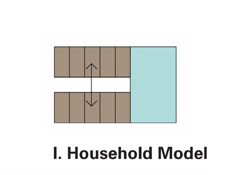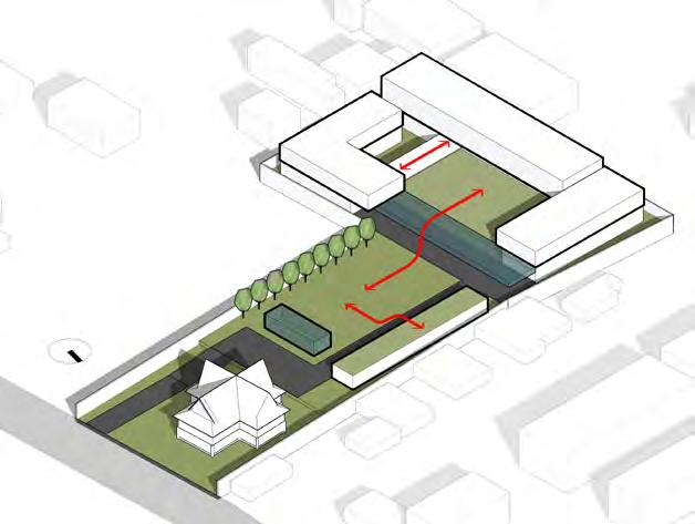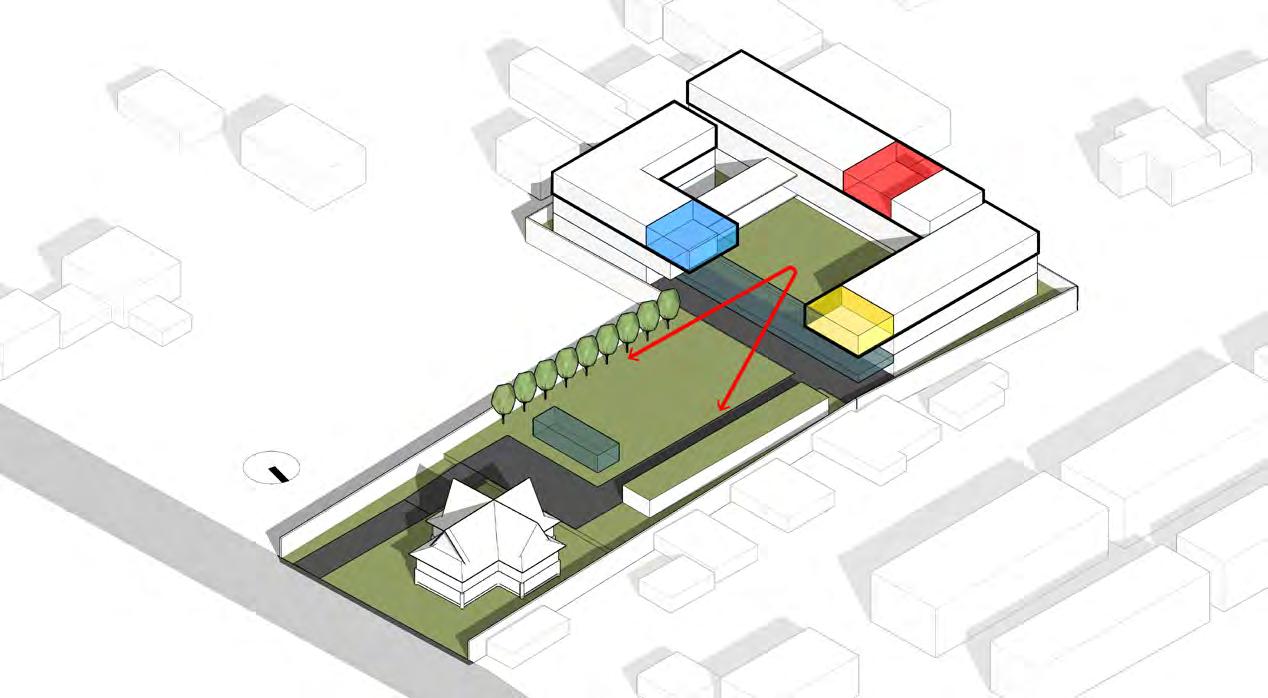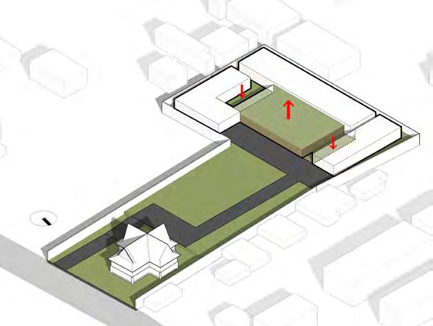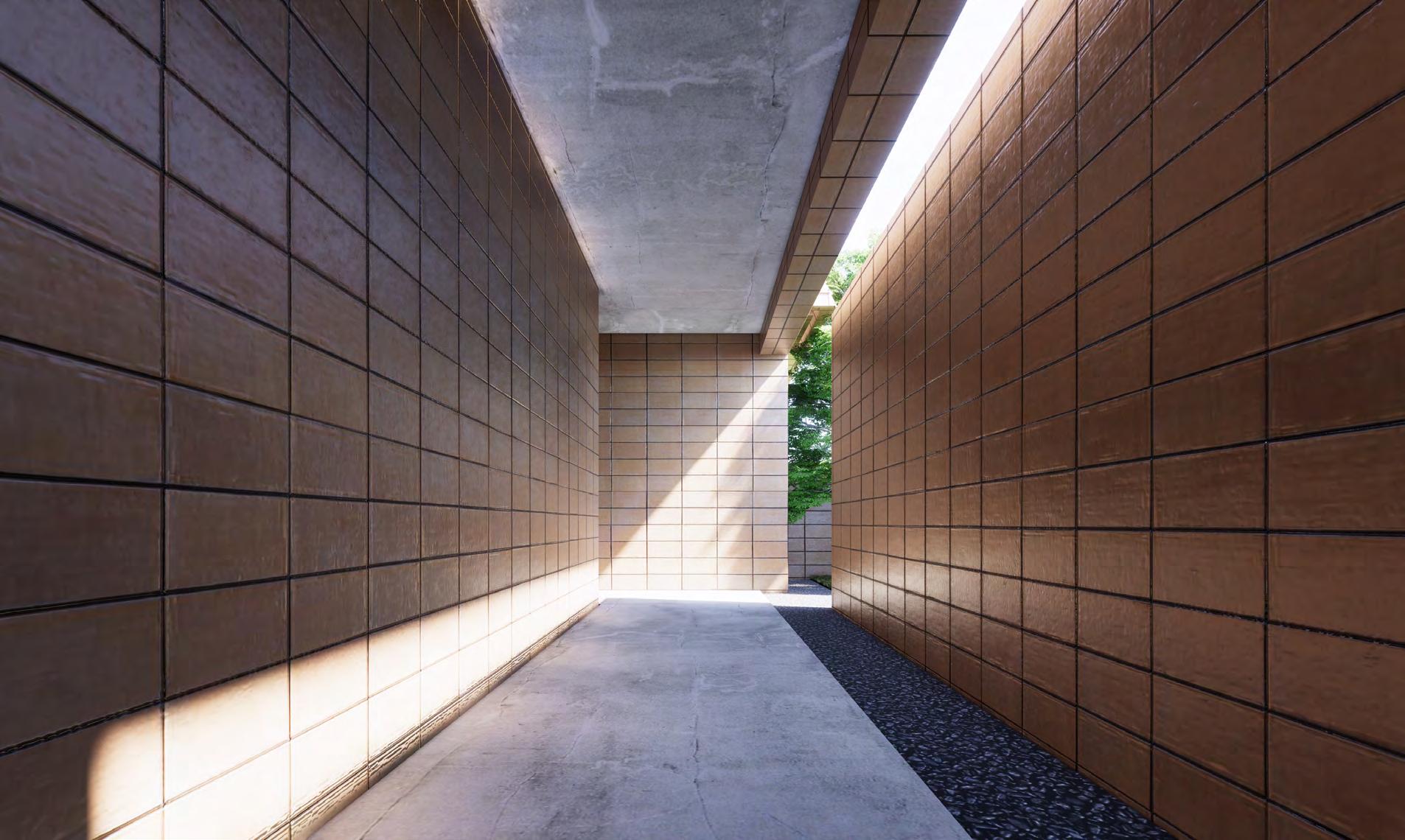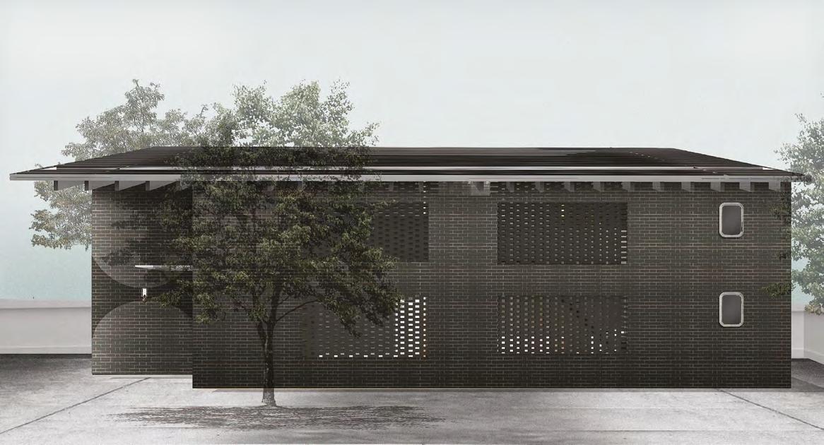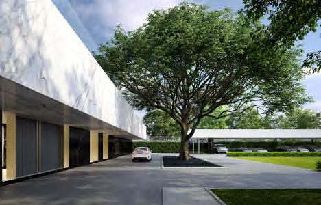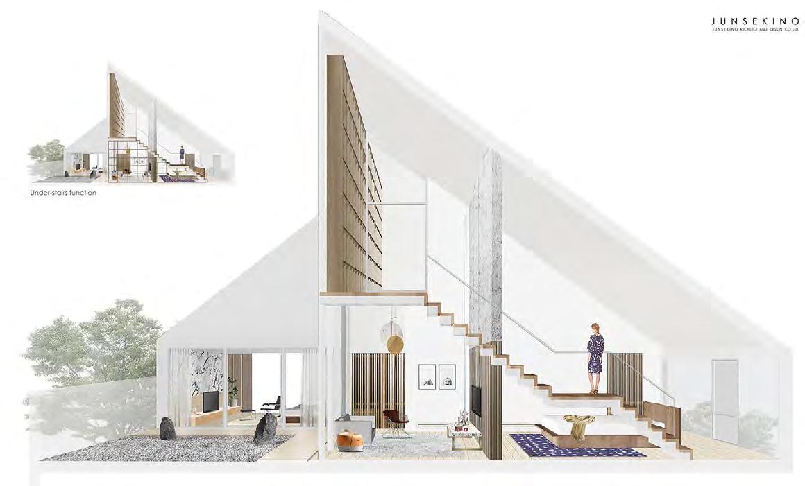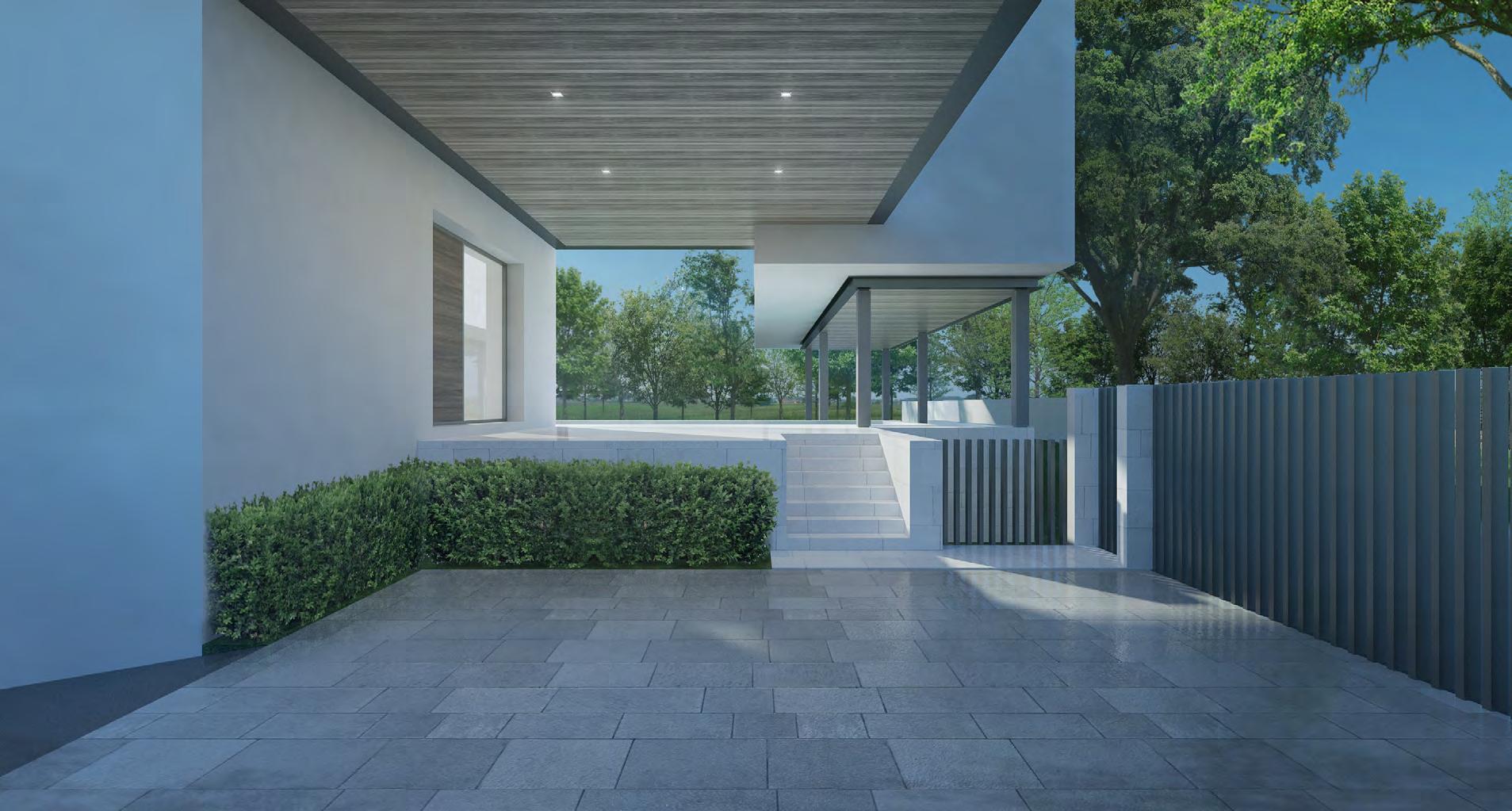 Massing design is an overlap of 2 flipped L-Shape masses and separate zone into 3 zones. Parking lots and service rooms are under the house by -1.50 m. sunken level from drop off and lift up the house to +1.50 m. from drop off.