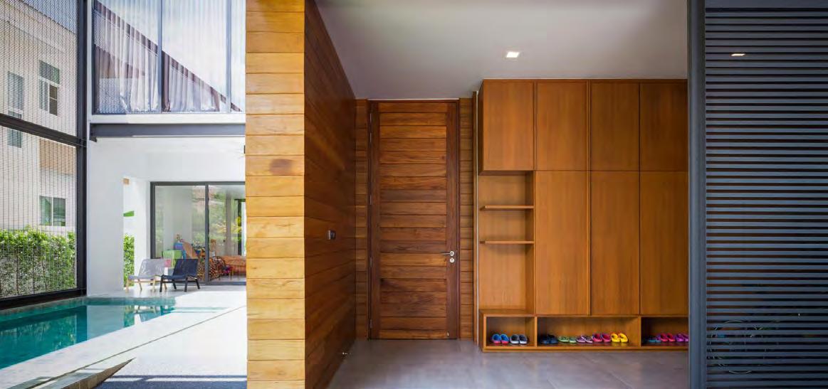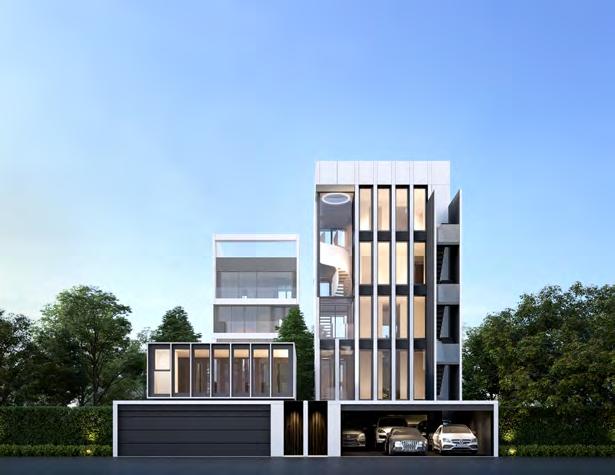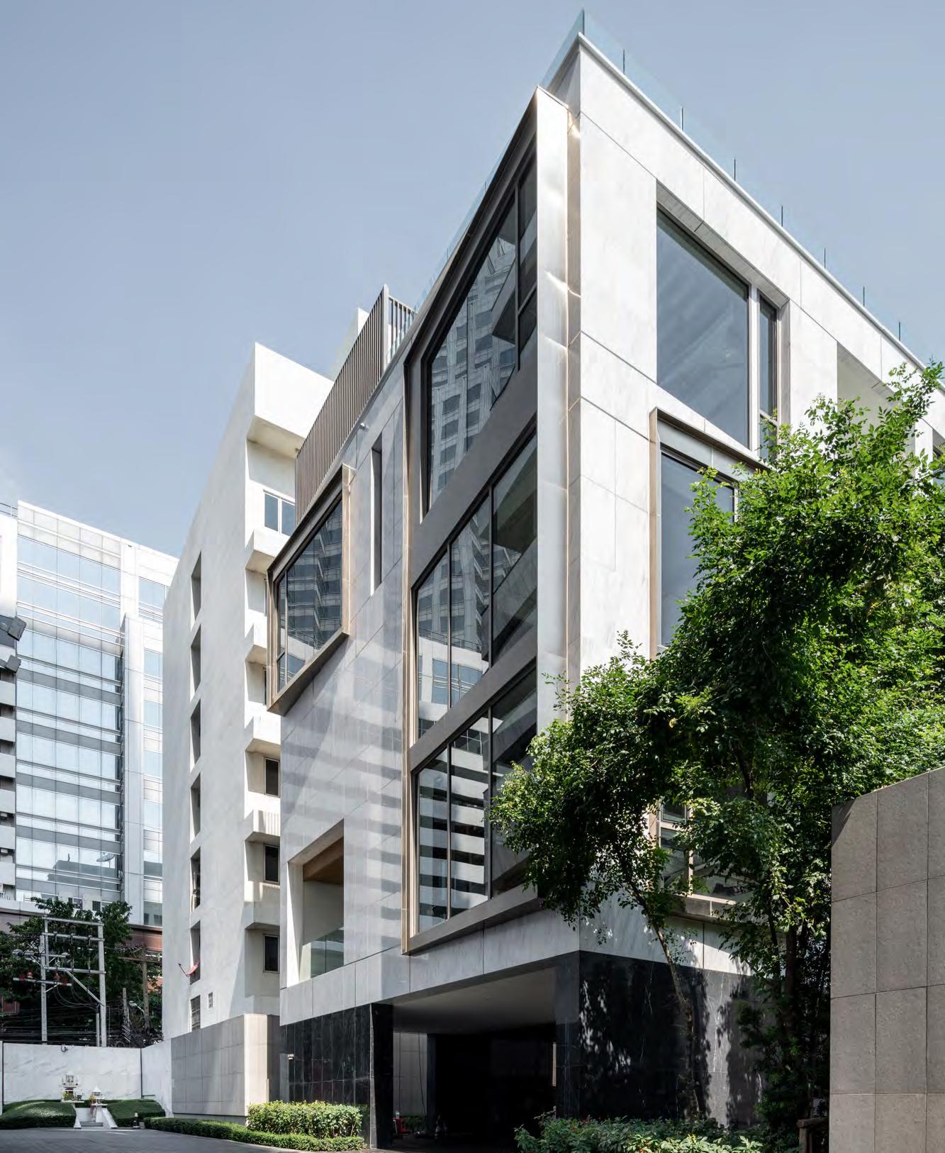 The Retirement home of Bel Vedere tile’s CEO and his family in Bangkok, By the simple design concept that straightforward present the Parent’s unit(right), Common area unit(middle) and Son’s unit(left) who is a successor of Bel Vedere business.