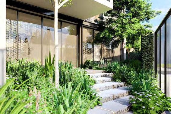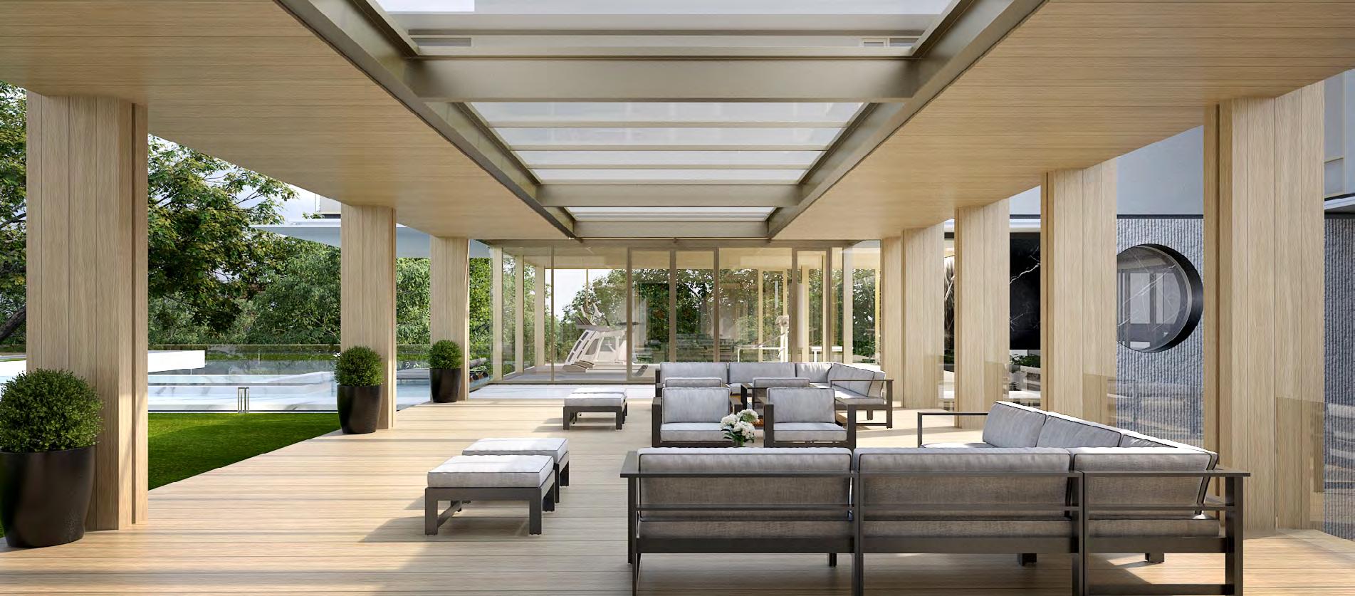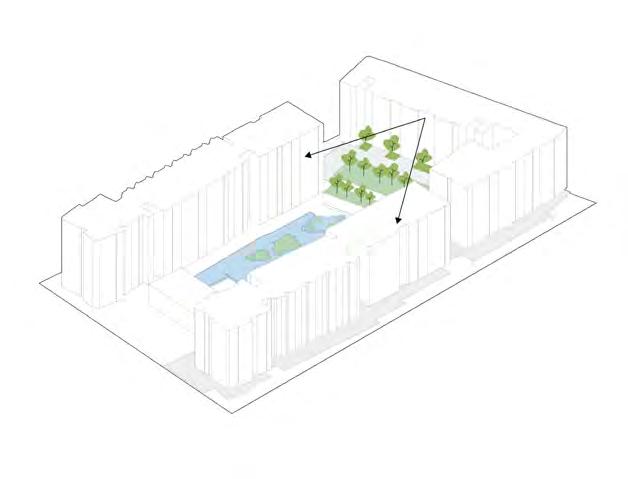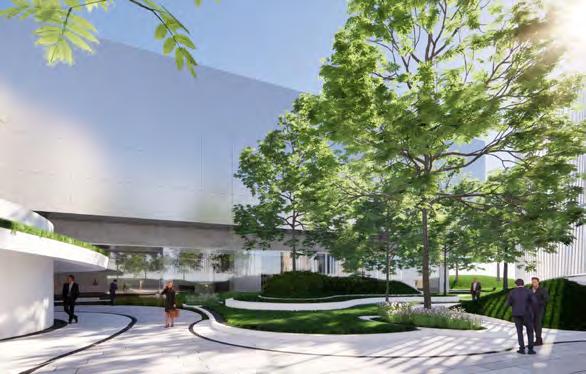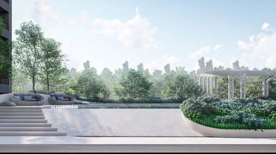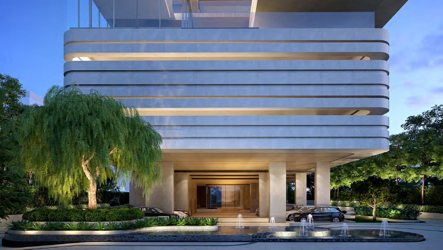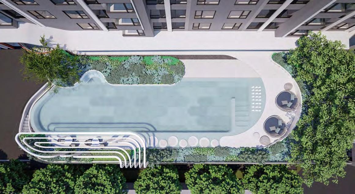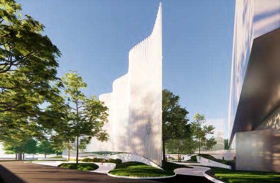 The concept of Tropical High Rise is then applied to the design. The first tropical feature is unique horizontal shading fins. They help to reduce glare and shield large windows from rain. Gradient of fins thickness create a dynamic touch to the overall composition and a refreshing touch to the skyline.
