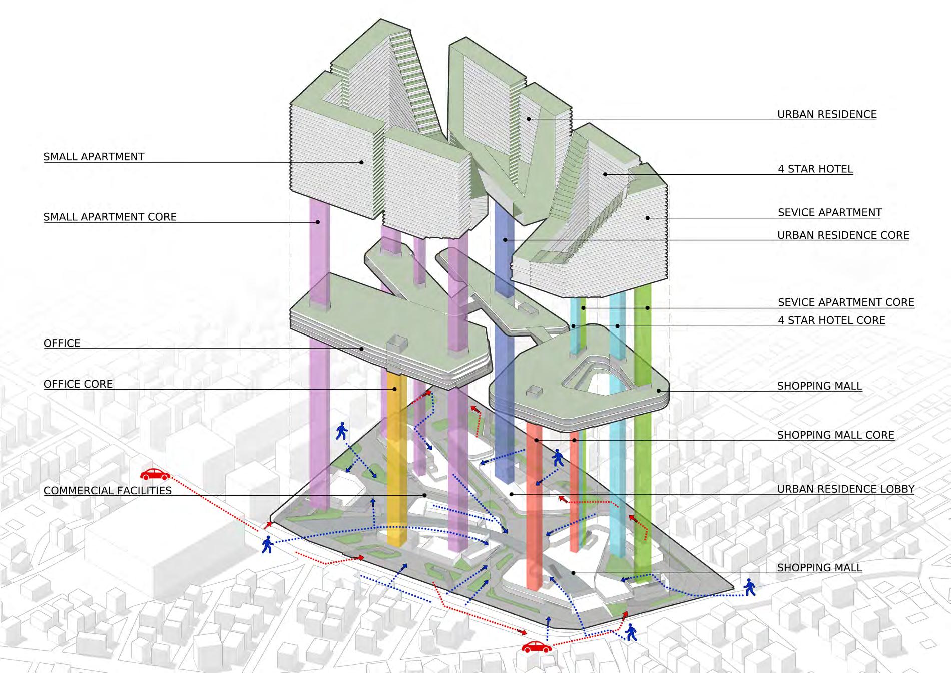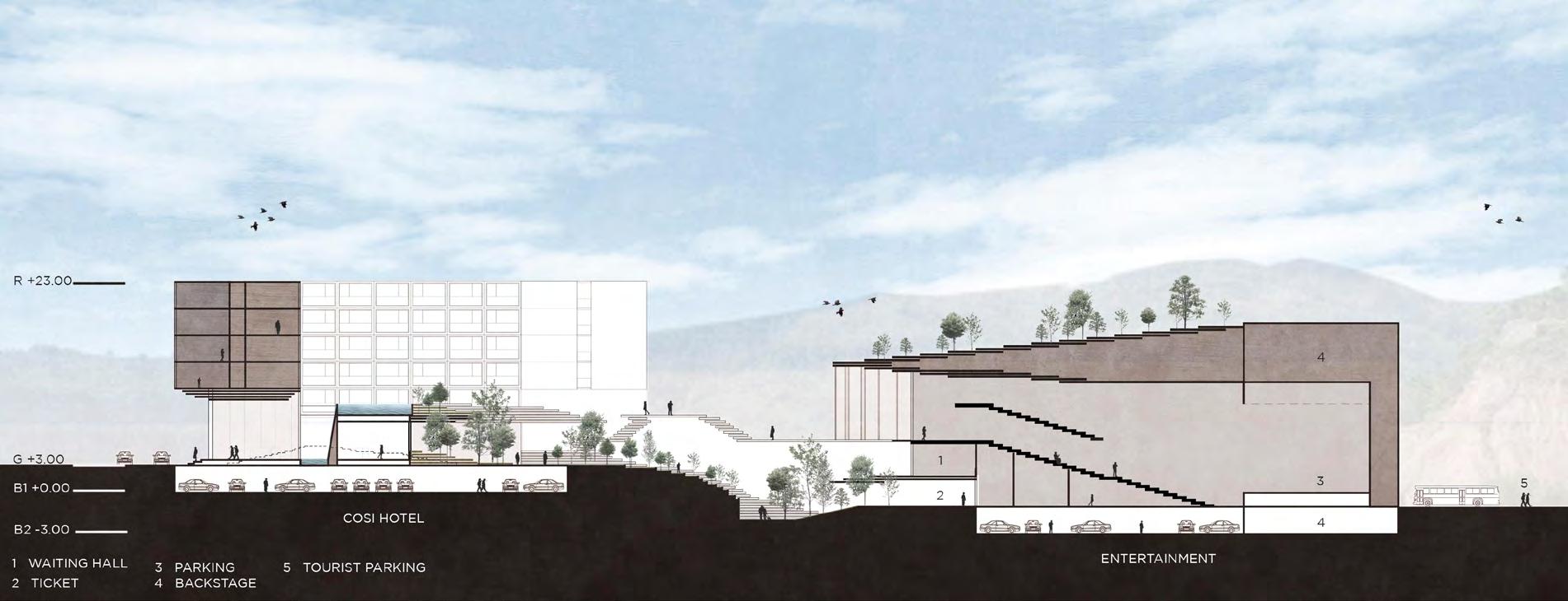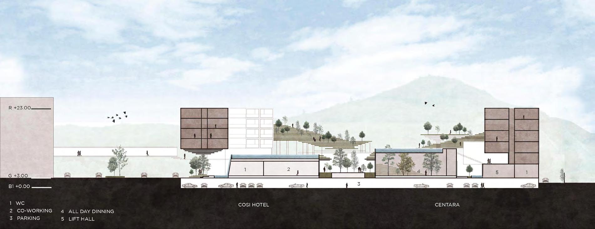 The key words Elegance and Timelessness inspire to use the impression of white Marble, the classic stone that has been well known around the World as a timeless symbol of luxury in architecture and design. To apply such concept for the architecture of this modern time, Simplicity becomes inevitable. The overall massing concept starts from local building guideline. The result is a simple, stepping, block of marble, with multiple terrains, overlooking skyline sceneries at different levels. After that, marble carving, sculpting process begins.